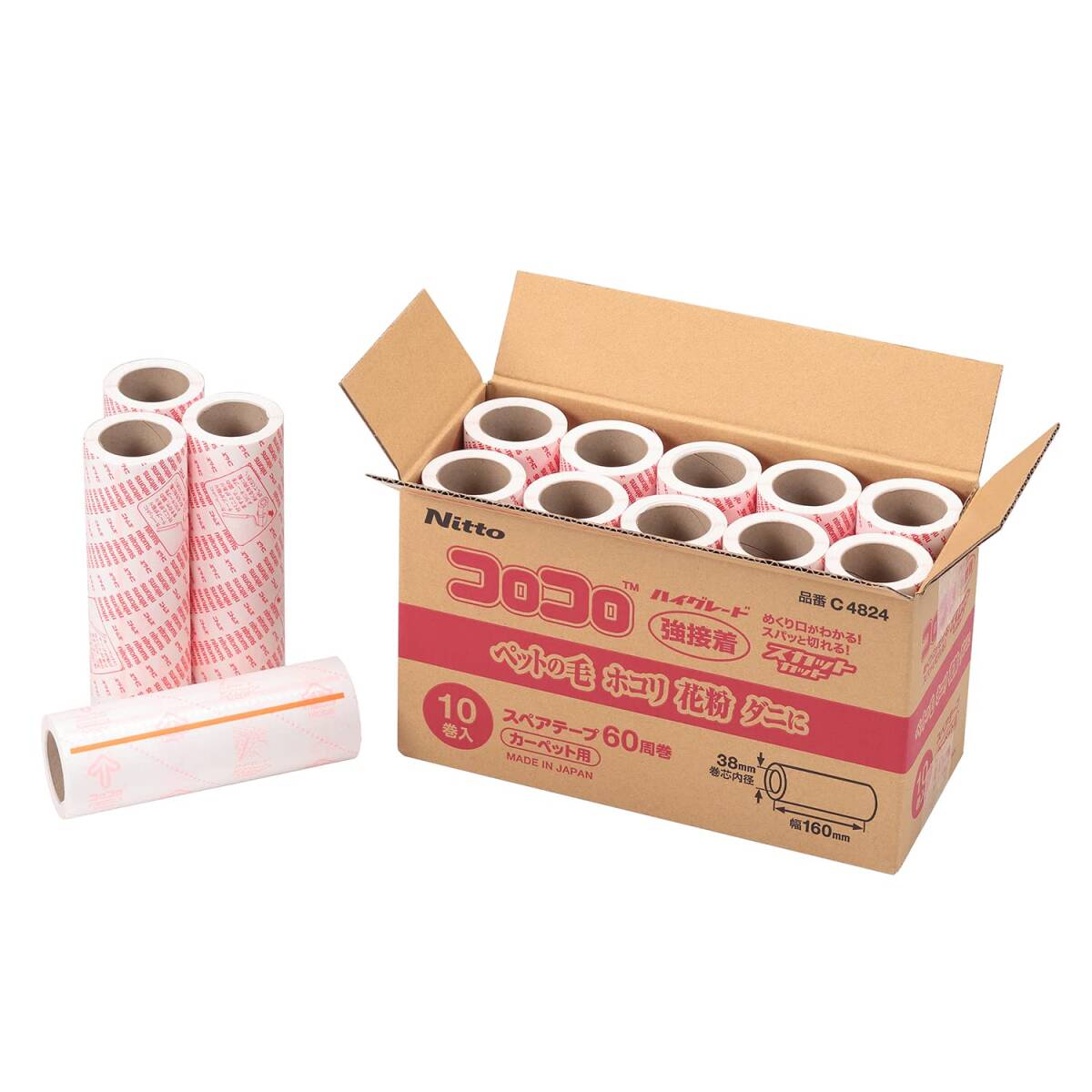 ニトムズ コロコロ ハイグレードSC 強接着 スペアテープ スパっと切れる 60周 10巻入り C4824 白