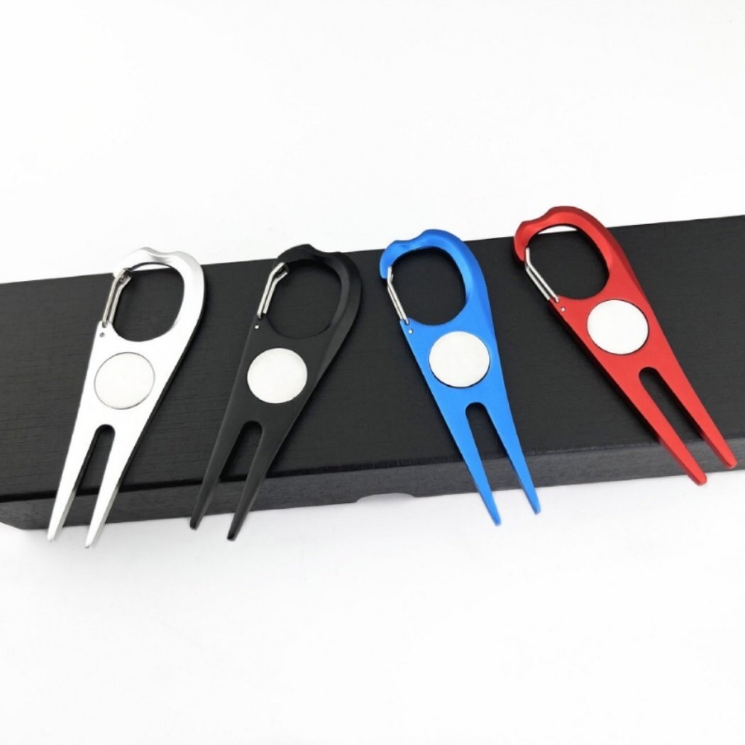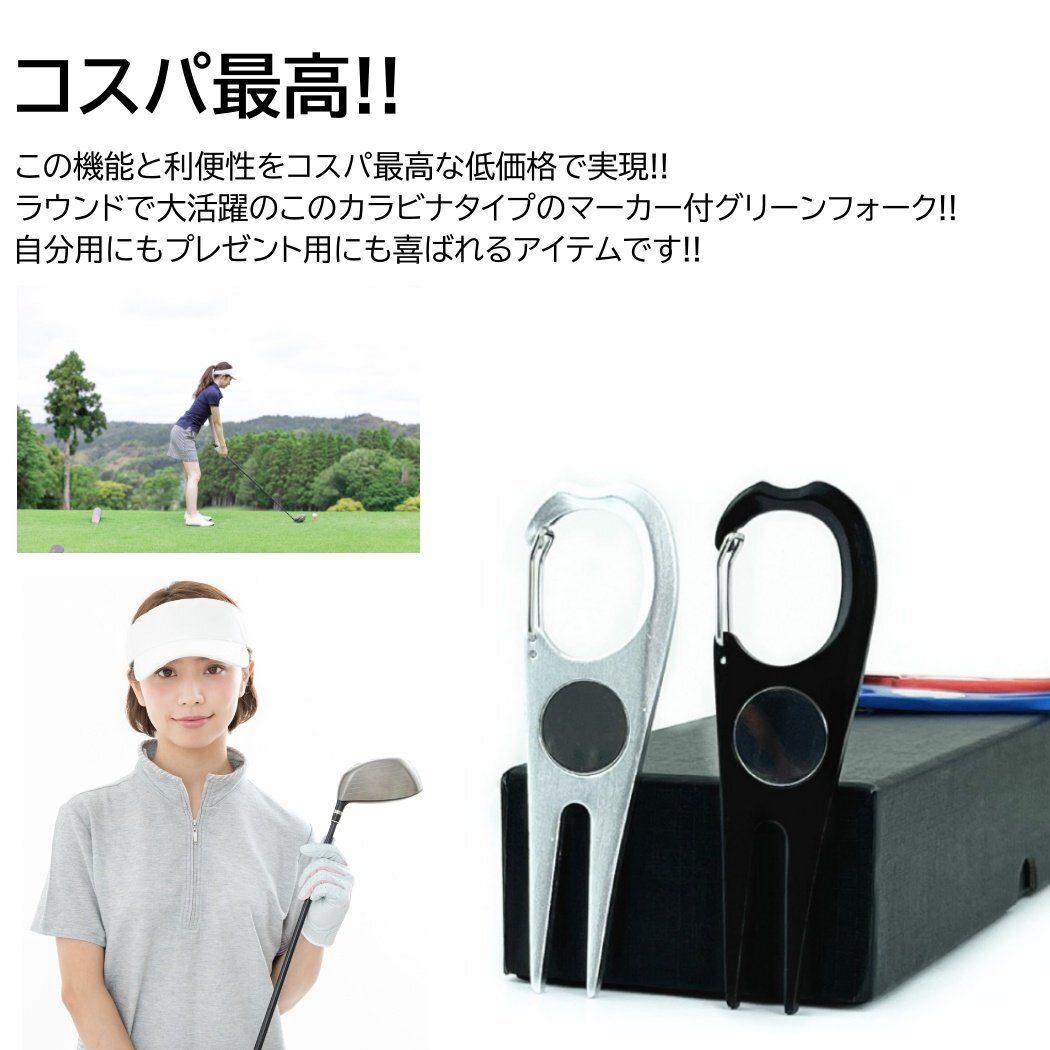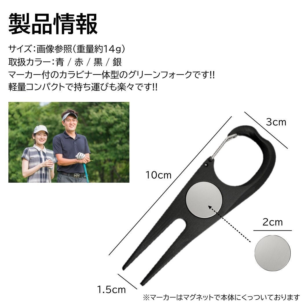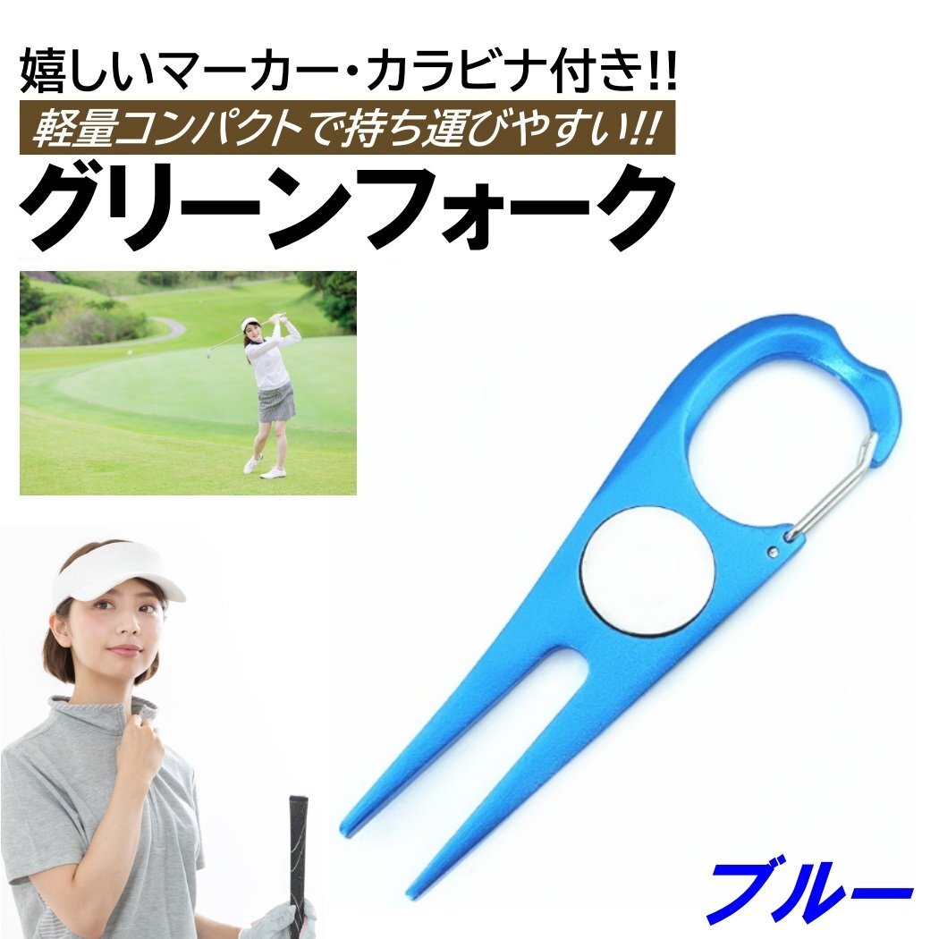 青 グリーンフォーク ゴルフ マーカー カラビナ シンプル ラウンド リペアツール ピッチマーク コンペ 軽量 ディボット ツール