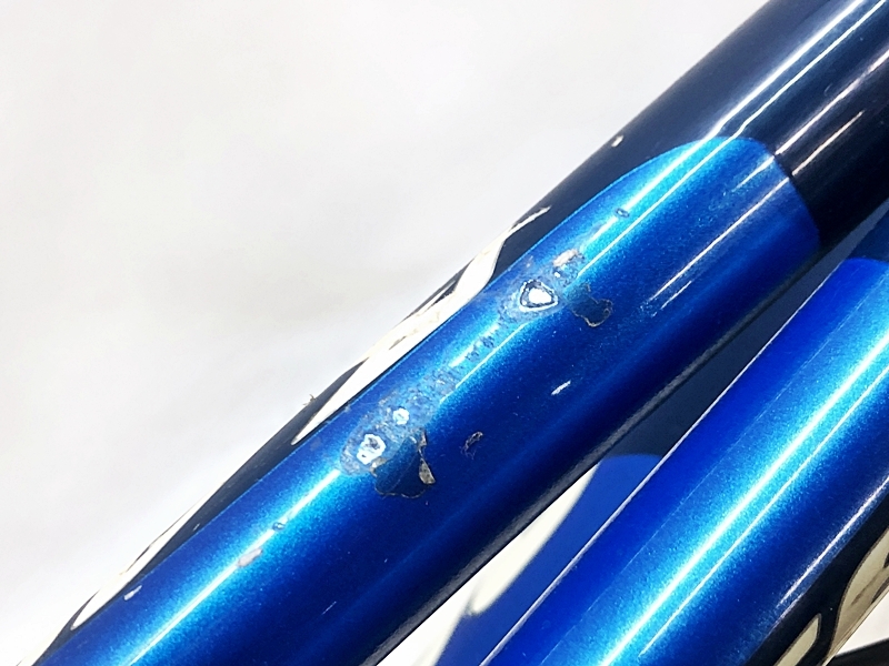 フレームやパーツにキズや汚れ、サビがあり、強い使用感が感じられる車体です