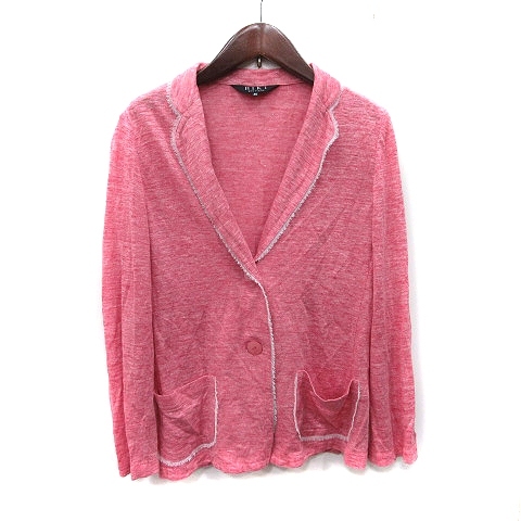 ビキ BIKI テーラードジャケット カットソー 総柄 麻 リネン 40 L 赤 レッド /YI レディース