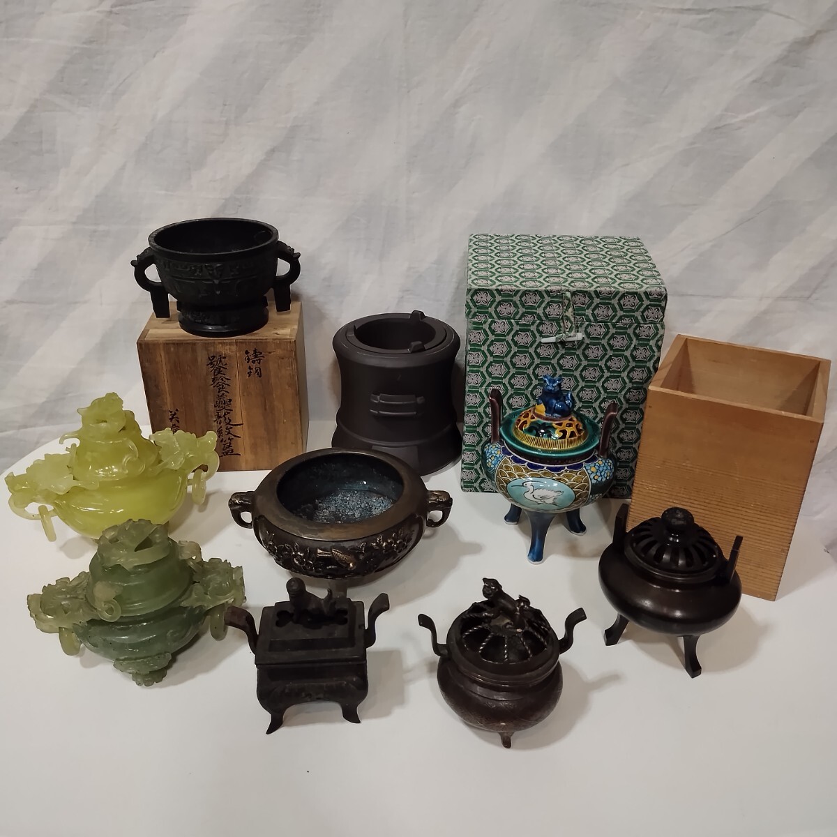 香炉 まとめ セット 九谷焼 角福 鋳銅 饕餮龍紋 小林三春 ヒスイ 三足 獅子 銘 火鉢 箱 茶道具 伝統工芸品 骨董 古美術 希少 の出品です。