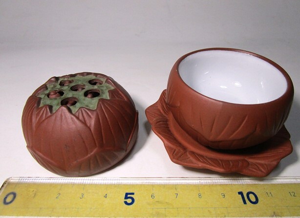 茶杯は裏の蓮の種が少し出ていますので、置いたり持上げ時にカラカラっと種が鳴ります。