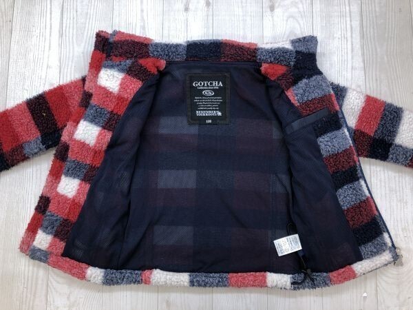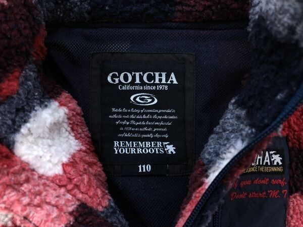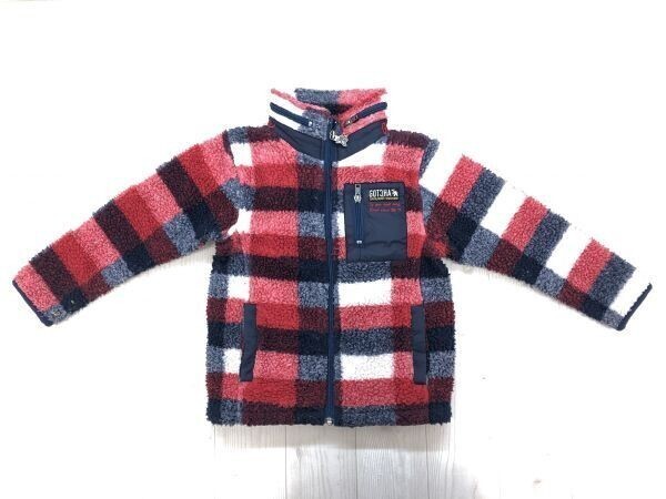 レトロ サーフ アメカジ ストリート キッズ 古着 ガッチャ GOTCHA ロゴ刺繍 ボア フリース ジップアップ ブルゾン ジャケット 110 赤 青 紺 です。