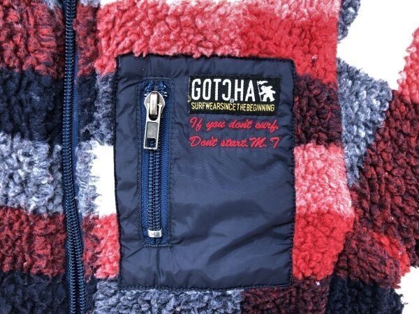 レトロ サーフ アメカジ ストリート キッズ 古着 ガッチャ GOTCHA ロゴ刺繍 ボア フリース ジップアップ ブルゾン ジャケット 110 赤 青 紺