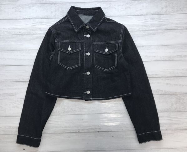 トレンド インポート レディース ストリート カジュアル 古着 Dazy シーイン 短丈 クロップド ステッチディテール デニム ジャケット L 黒 です。