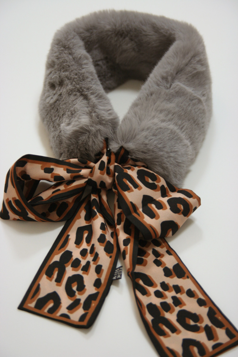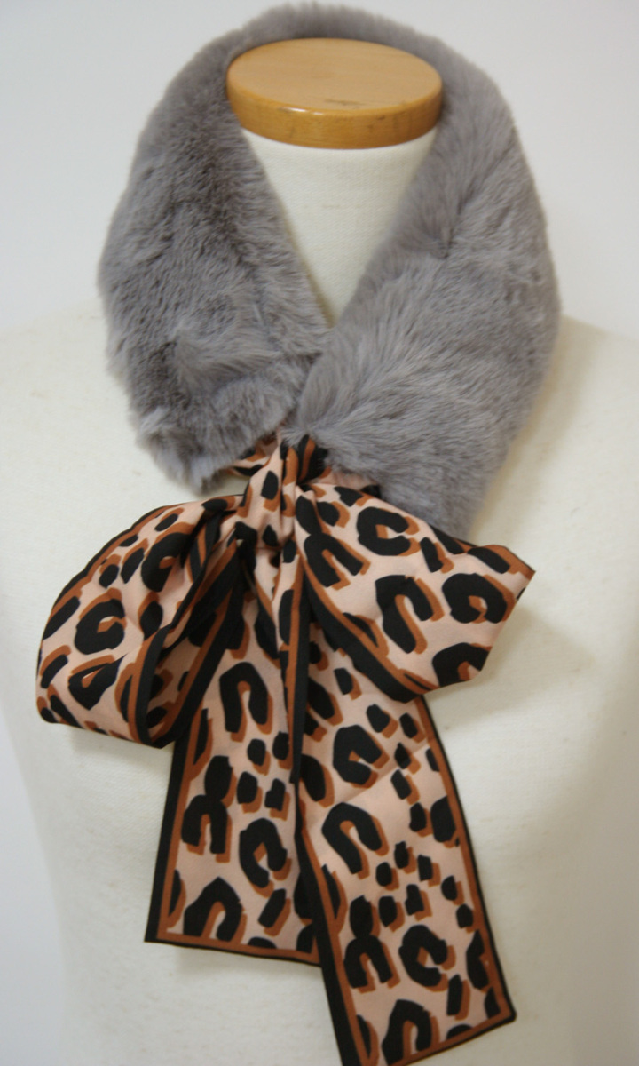 送料無料◆超お得◆同色5本組◆高級襟巻◆フェイクファー◆マフラー◆ミンクタッチ◆ヒョウ柄リボン◆ファーティペット(グレー)3755