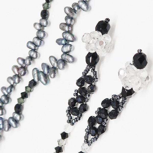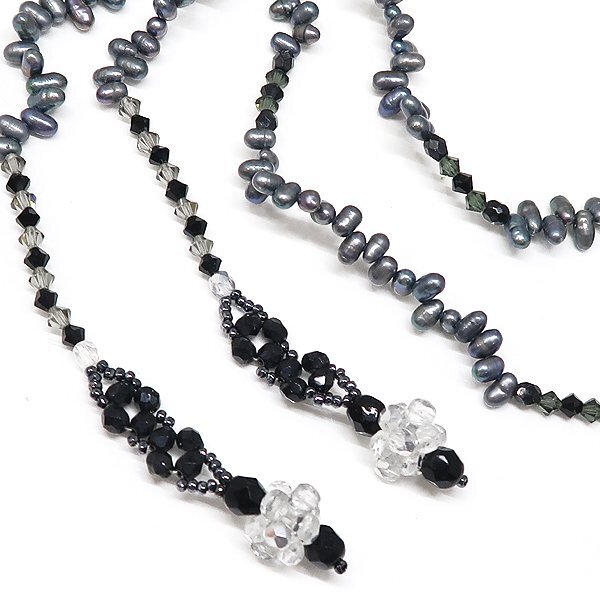 長い紐状のネックレスで、留め金がないことが特長のラリアットネックレスです。