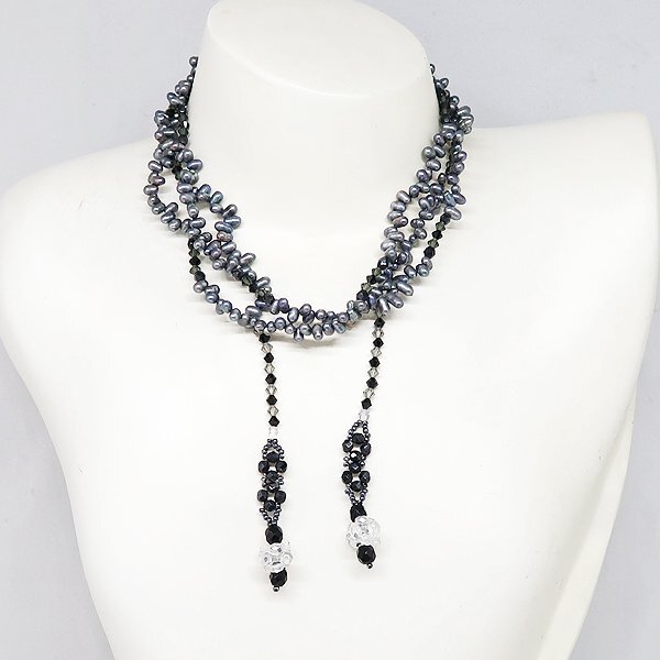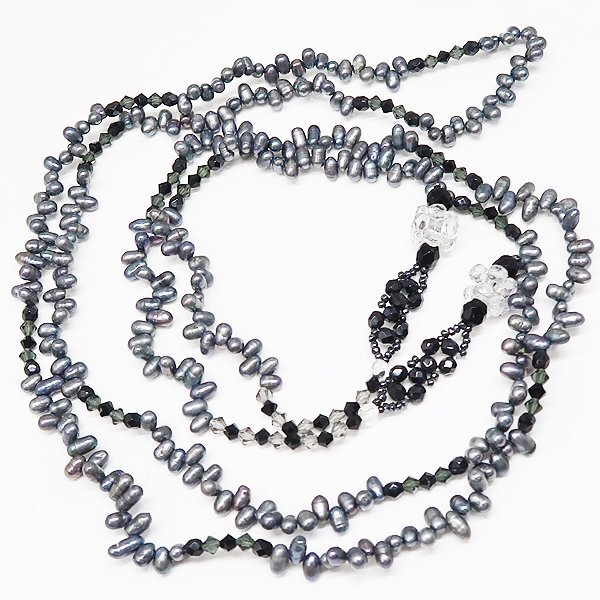 DKG★送料無料★ 本真珠 グレー ライスパール ラリアット ネックレス 約136cm パール ロングネックレス