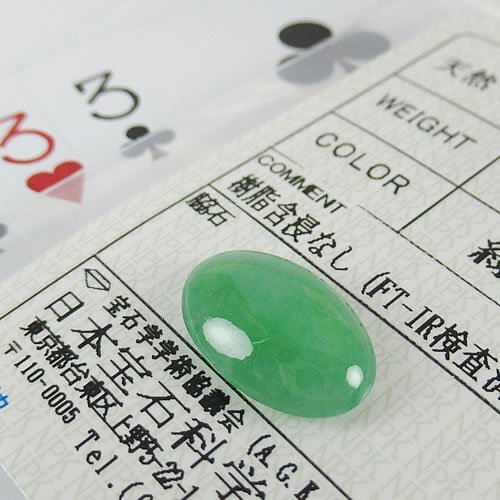| 品名 /【SJ】新品 ヒスイ(ジェイダイト) 6.28ct ジュエリールース 材質 / 天然ヒスイ(ジェイダイト) 縦・横 / (約)16mm 10.3mm 厚さ / (約)4.7mm 総重量 / 6.28ct 日宝協ソーティング付き 【SJ】/ 新品製品 品番 / ACD481 参考小売価格 / 231,000円 |