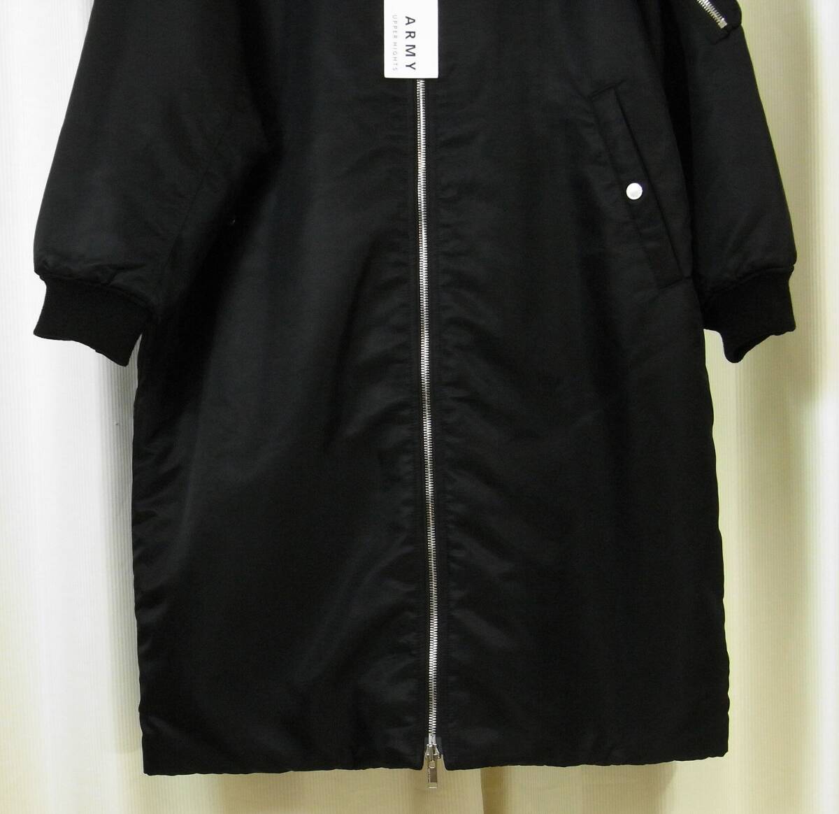 | 未使用タグ付42,900円 ARMY upper hights アッパーハイツ ロングMA-1 ロング丈ミリタリージャケット THE U-2 LONG(ザ ユーツーロング) ブラック サイズ1 シンプルなロング丈のミリタリージャケットです。 合わせやすいブラックのお色です。 アームホールや袖幅を大きめに取り、アームホール下からストレートに丈を長くしたロングコート。 MA-1らしさを残しつつ、丸みのあるシルエット。 ナイロン高密度サテン素材に弱撥水加工を施し、汚れが付着しづらい仕様。 ファスナー、別注ジャガード裏地を採用し、高級感ある仕上がりの1枚。 写真で分かりにくいですが左前面に少しだけ保管時の小さな汚れのようなものがあります。 ほとんど目立ちませんがご理解いただける方の購入をお待ちしております。 丈:約110センチ 身幅:約65センチ(脇の下) 表地 ナイロン100% 裏地 ポリエステル54% レーヨン46% リブ アクリル63% ウール8% ナイロン8% ポリウレタン2% 中綿 ポリエステル100% | ||