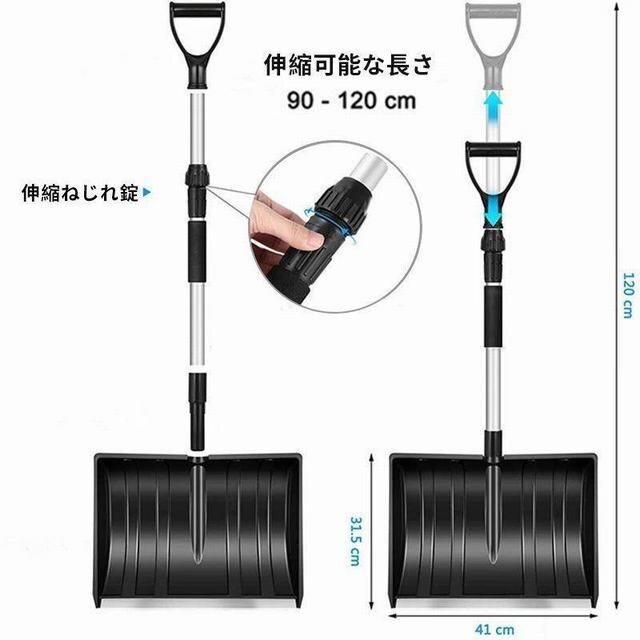 雪かきスコップ 除雪スコップ プッシャー スノースコップ コンパクト 除雪用品 除雪機 シャベル 雪おろし 除雪作業 道具 伸びる 丈夫