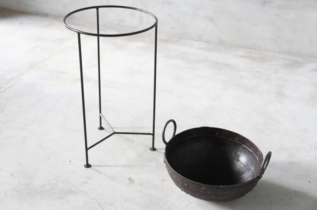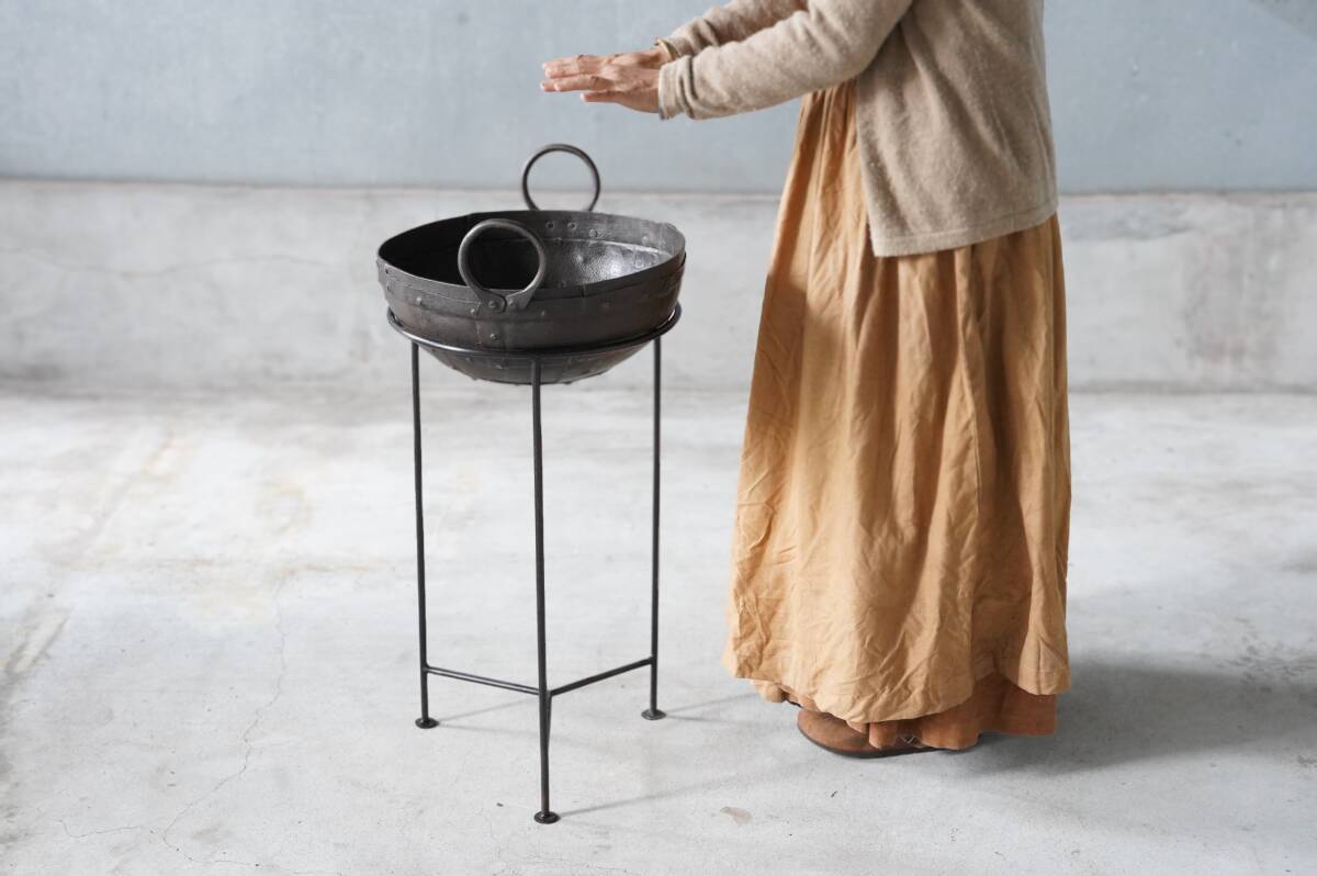 鉄鍋の部分は、アンティークの鉄鍋です。