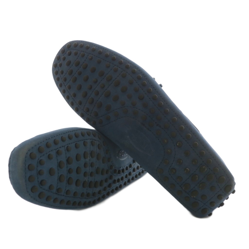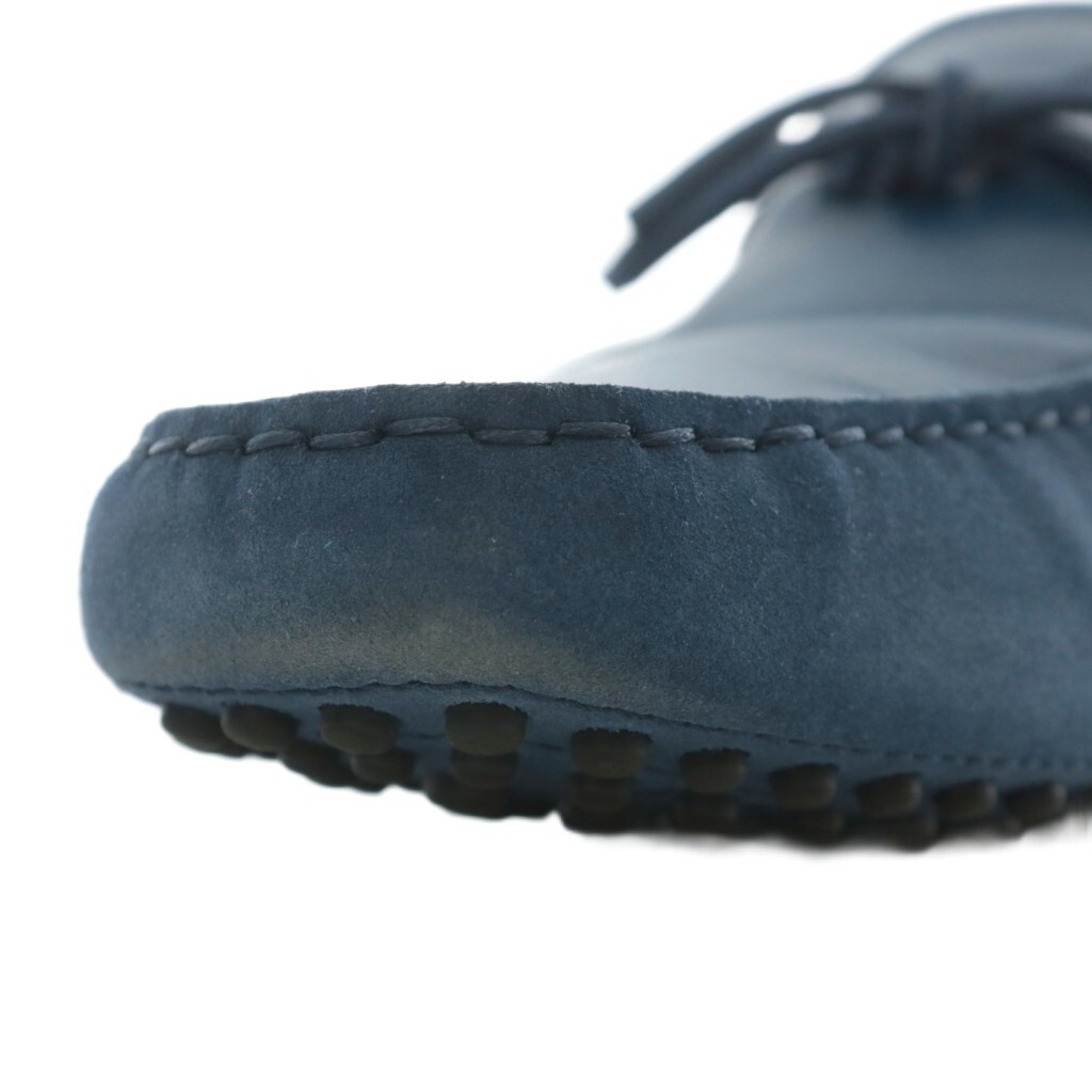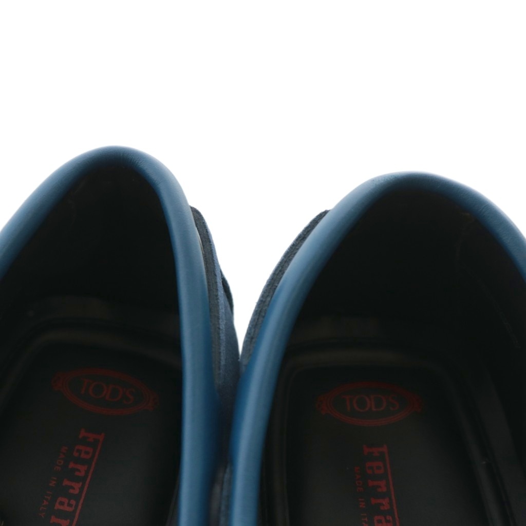 トッズ TOD'S フェラーリ Ferrari ゴンミーニ ドライビングシューズ ローファー スエード レザー リボン ロゴ 刺繍 6.5 25.5cm 青