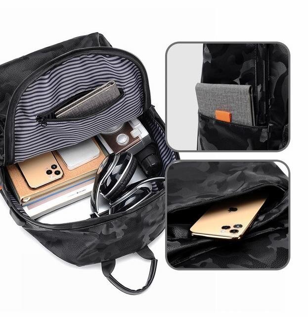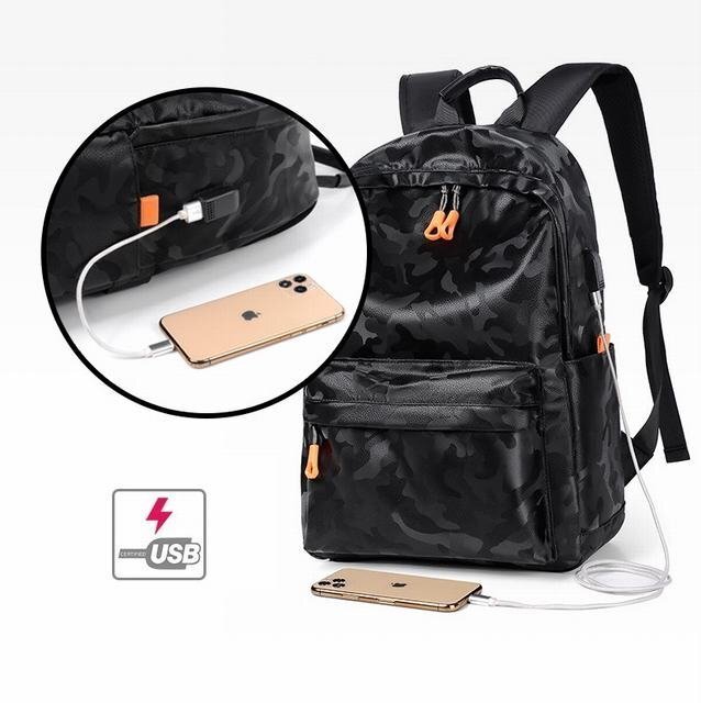 迷彩柄 リュックサック リュック メンズ usbポート 撥水 大容量 A4 通勤 バックパック 高校 大学生 通学 ブラック