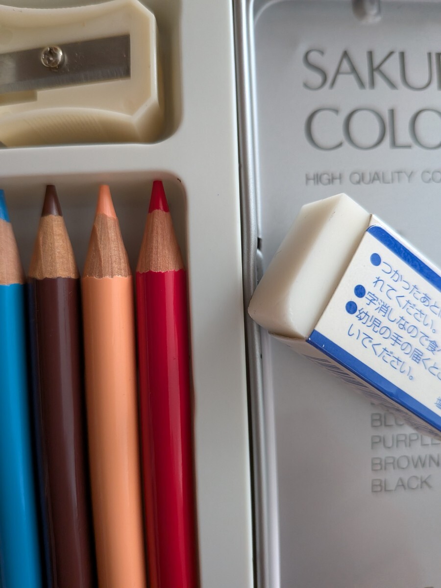 ほぼ未使用ですが、写真のように、付属の消しゴムの角がやや丸くなっています。