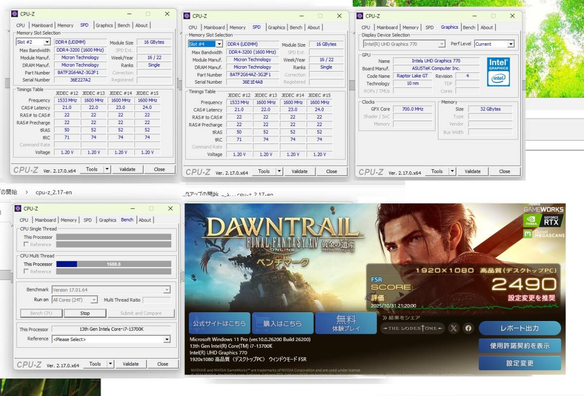 | 商品説明 | AMDに乗り換えて不要になりました。 CPU、マザーボード、メモリのセットになります。 動作は特に問題ありませんでした。 曰く付きの13世代ですが、CPUに関するベンチマーク「7-zip」「CPU-Z」「ファイナルファンタジー」でテストを行いましたが特にエラーは出ていませんでした。 BIOSは最新版を適用しています。 商品 intel core i7 13700K ASUS H670-PLUS D4 CFD DDR4 W4U3200CM-16GR(16G*2) |
