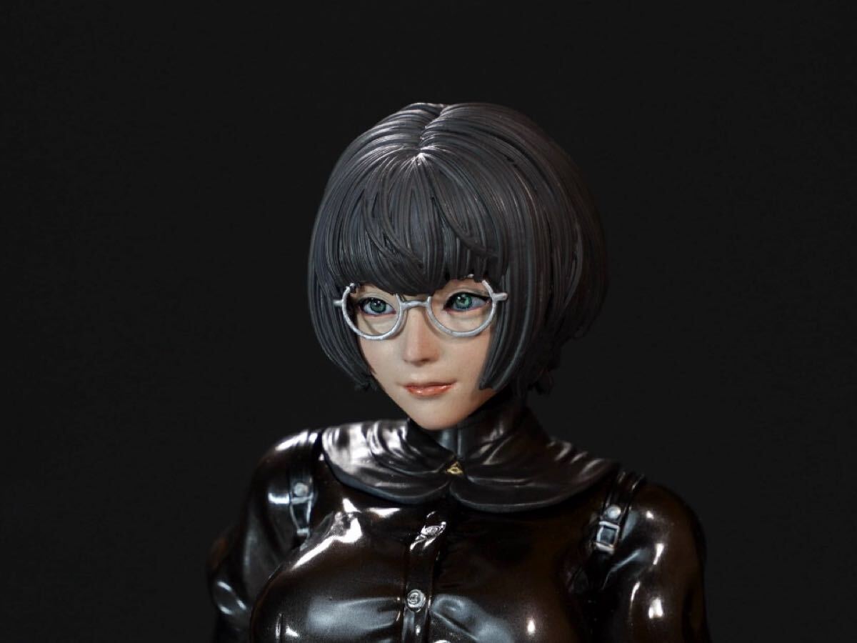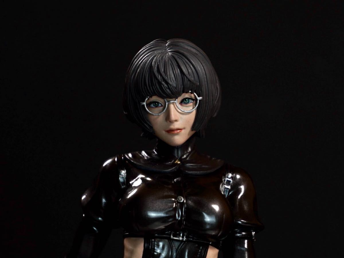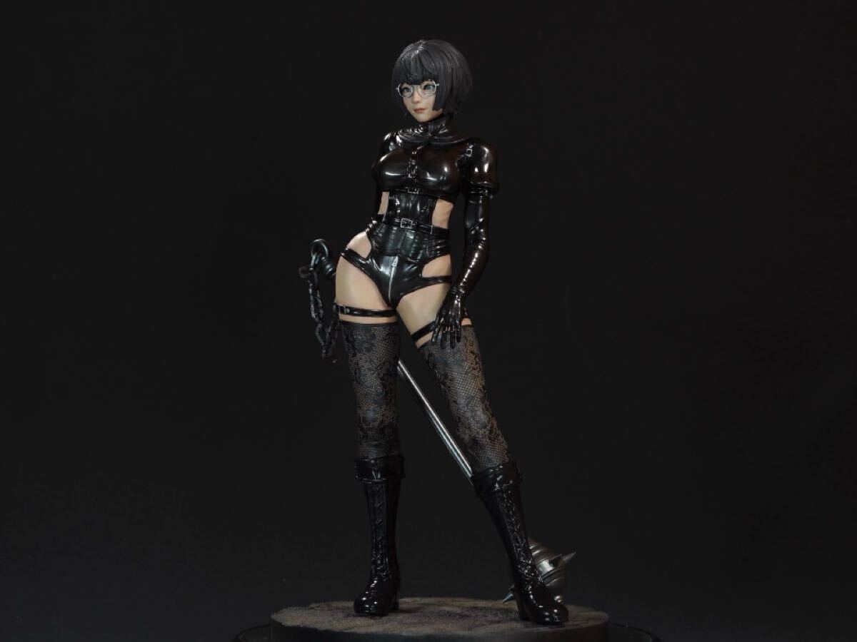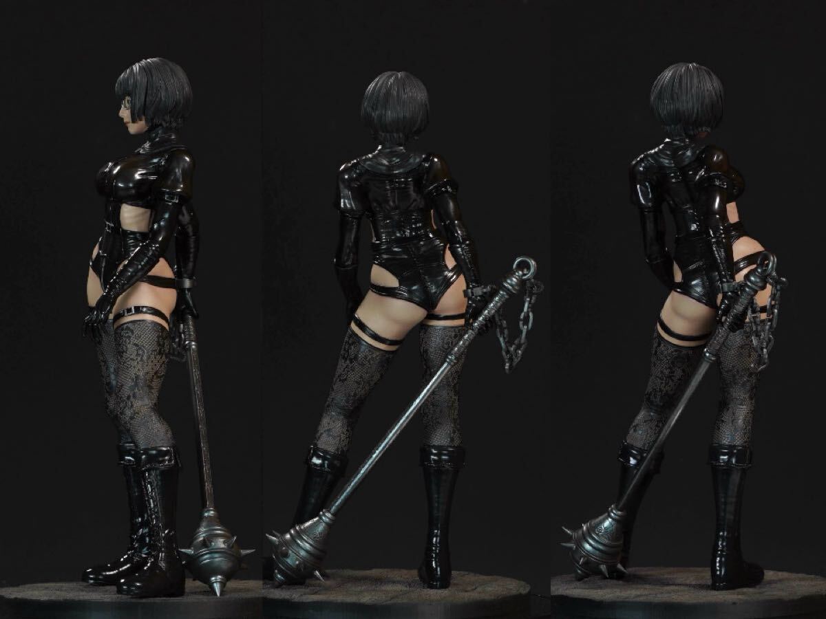 衣服、髪の毛等は黒をテーマにしていますが細部の造形とエアブラシによる細やかな塗装によりツヤや質感で違いを出しています。