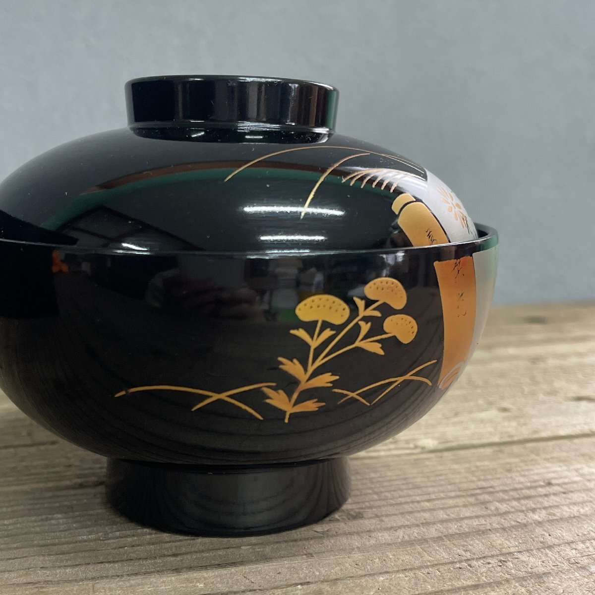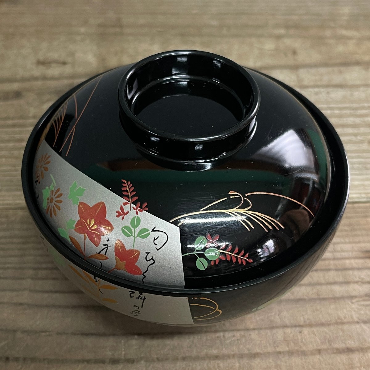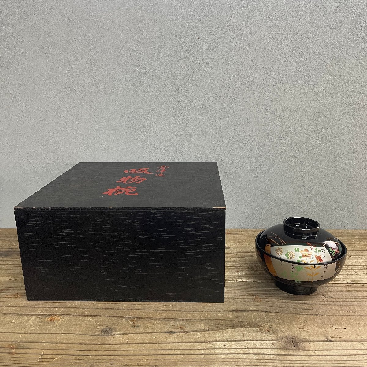 会津塗 汁椀 未使用★保管品★巻物絵 漆器 吸い物碗 お椀 蓋つき碗 5客