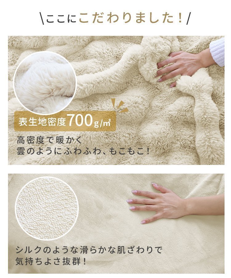 | ふわっととろけるような肌ざわり もこもこかわいいブランケット!インテリアとしても映える♪ 置くだけでおしゃれな空間に♪ ◆かわいい×実用性 2枚合わせでぽかぽか暖かい! 表はふんわり柔らかいラビットファー、裏は滑らかで保温性の高いマイクロファイバー 空気の層で保温性がグンとUP! ◆安心して使える低ホルム! 肌に直接触れるものだから品質にもこだわりました。 家族みんなで安心して使えます! ◆お手入れラクラク! 洗濯OK!いつでも清潔を保てます! 嬉しい収納袋付き!使わないときはコンパクトに収納できます♪ \インテリアになじむおしゃれなカラー!/ マルチに使えるブランケット! ひざ掛け、ソファカバー、布団カバーなどいろいろ使える! ■商品コード:FEK002DWH ■商品仕様 カラー:ミルキーホワイト サイズ:D(約)幅180cm×長さ200cm 素材: 表生地 ラビットファー 裏生地 マイクロファイバー ■注意事項 ・商品は、モニターによって色合いが異なって見える場合があります。 ・仕様・デザインは改良のため予告なく変更することがあります。 ■保障期間 7日間 ※商品到着後7日以内の初期不良・破損のみご対応させていただきます。 【新品未使用品です】 |