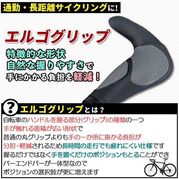 自転車 ハンドルグリップ 汎用 エルゴグリップ 牛角グリップ バーエンド一体型 自転車グリップ ソフトラバー