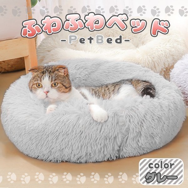 ペット ベッド ペットベッド 猫 ネコ 犬 イヌ グレー クッション もふもふ 冬 おしゃれ グッズ 猫用ベッド ふわふわ ふとん キャットハウス