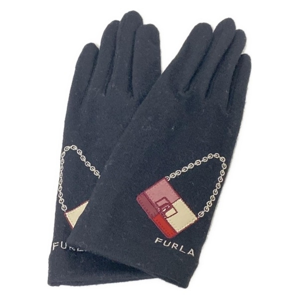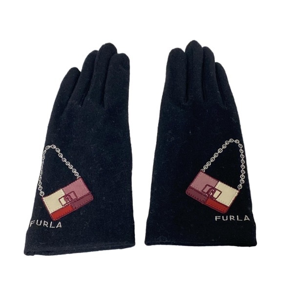 フルラ FURLA - ウール、カシミヤ、レザー 黒×ピンク×マルチ レディース バッグ/ラメ/タッチパネル対応 美品 手袋