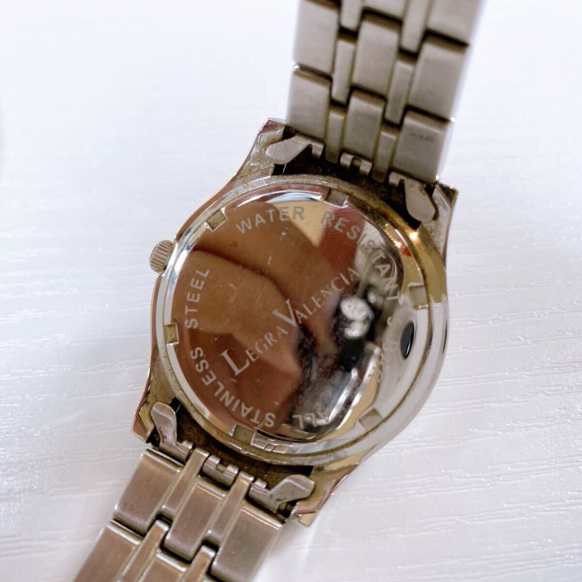 303【中古】LEGRA VALENCIA レグラバレンシア メンズ腕時計 クォーツ シルバー 文字盤ブラック ラウンドフェイス 動作未確認 現状品