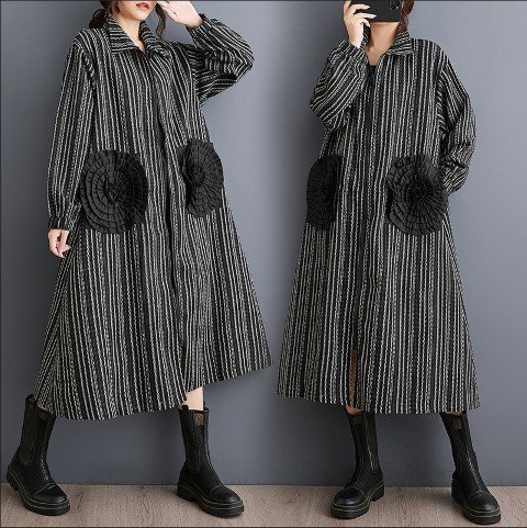 【F】バスト約122cm 丈約112cm 肩幅約51cm 袖丈約56cm