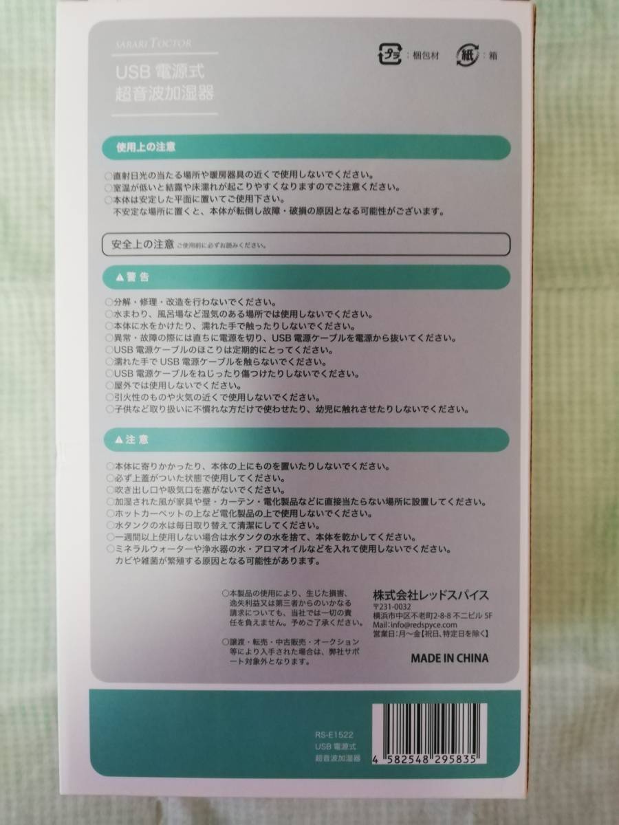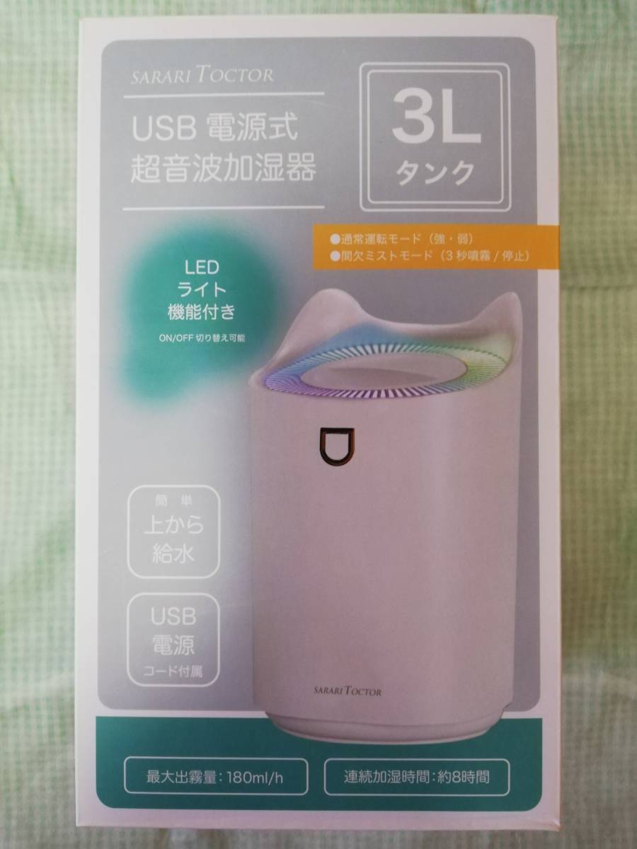 【 未開封新品・美品 】USB電源式超音波加湿器「 SARARITOCTOR」 LEDライト機能付き 3Lタンク