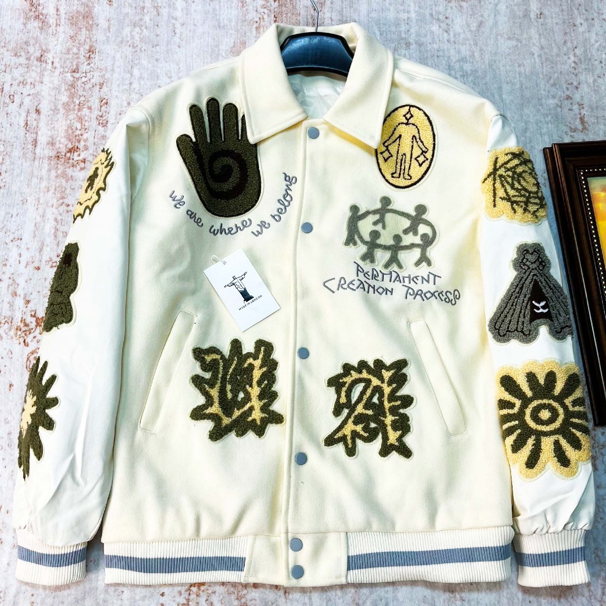 一枚限定 ジャケット ロンドン製造 カシミヤ100% 快適 防風 ソフト ゆったり 刺繍 オシャレ スタジャン アウター カジュアル 街着 SIZE:XL