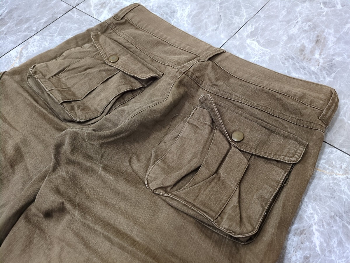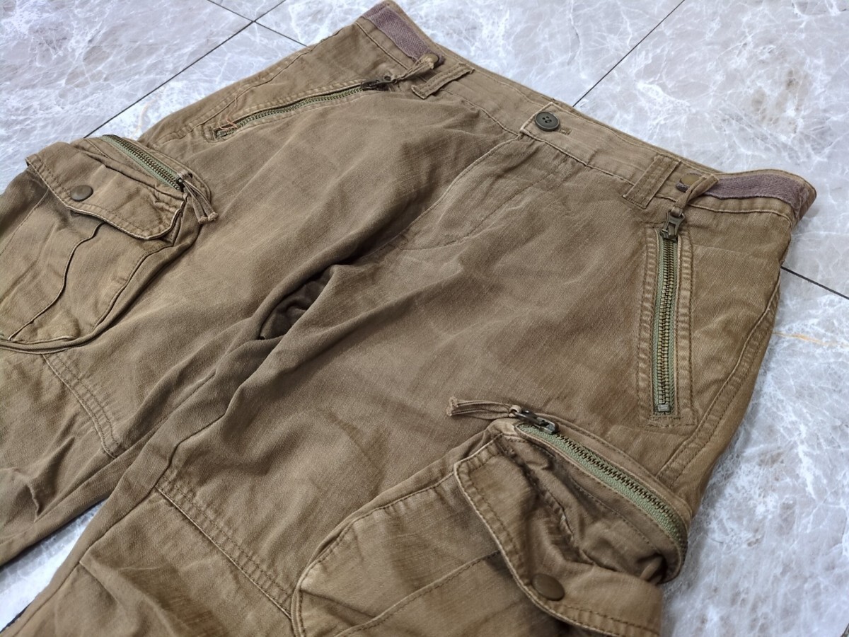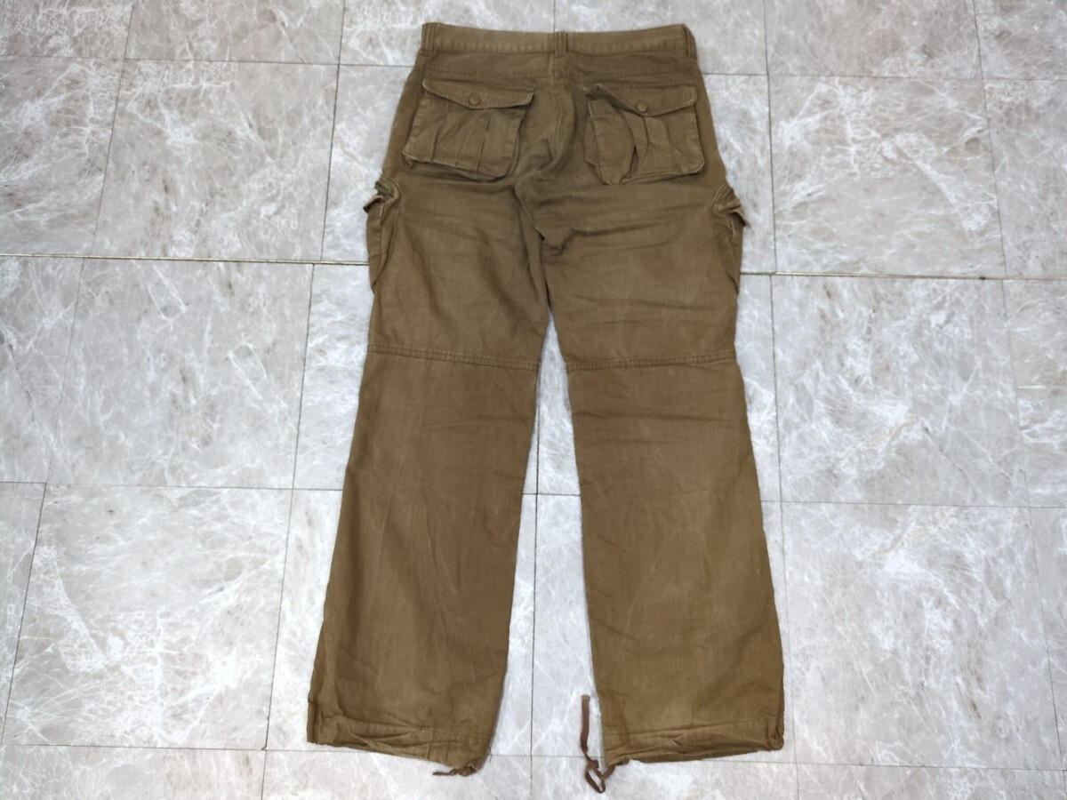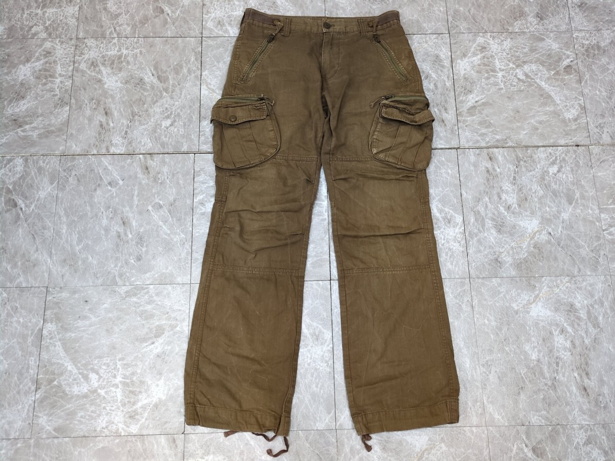 | バック上部に穴 バックポケットボタン留め付近に着色 裾に擦れキズ 汚れ 使用感があります |