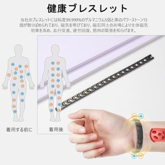 【ゲルマニウム、99.999%】: ゲルマニウム健康ブレスレットは、安価な磁石、トルマリン、または混合ゲルマニウムを使用せずに、99.999%の純粋なゲルマニウムを18粒グレイン使用しています。私たちの各ゲルマニウムは、厳格なSGSテストと認証に合格しています。安心して購入してください!