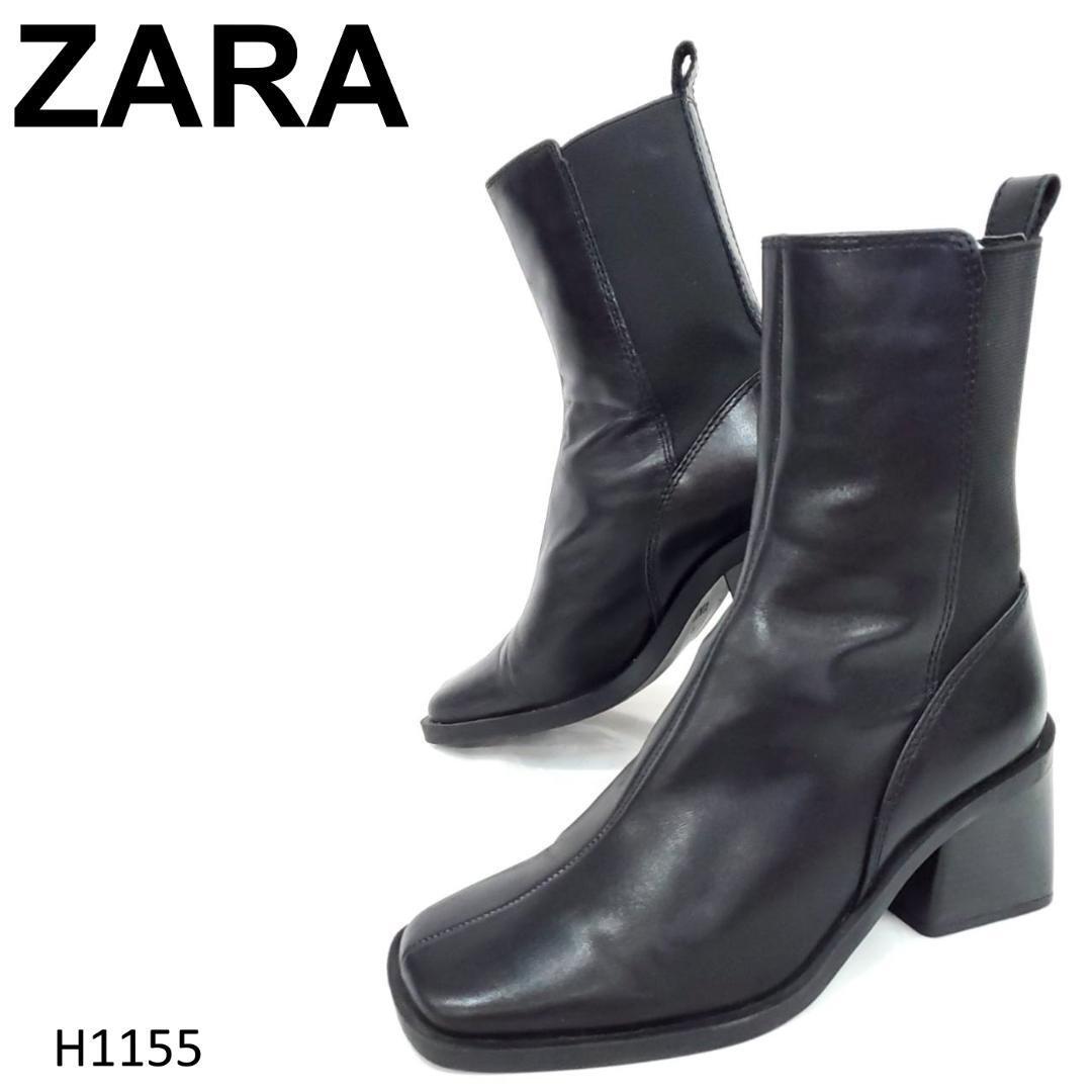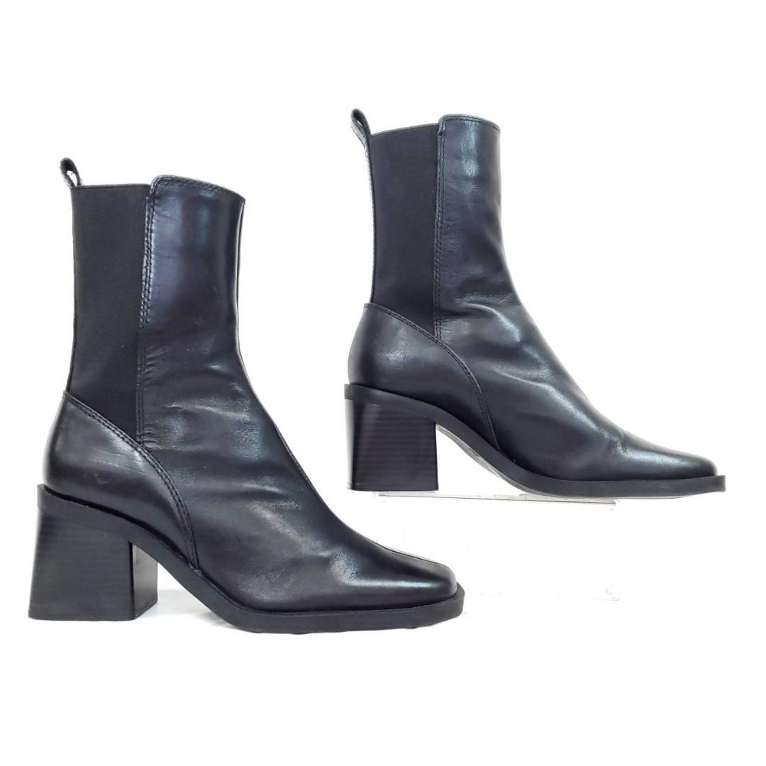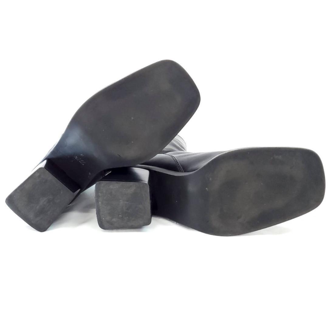 スタイリッシュなスクエアトゥに、安定感のあるブロックヒールが魅力。