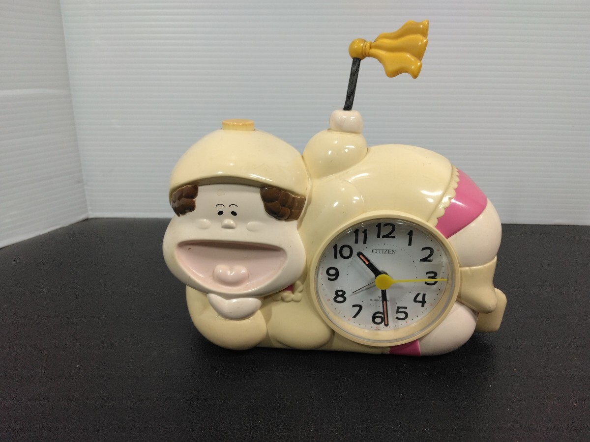 当時物 レトロ CITIZEN/シチズン クオーツ アラーム時計「なんだっぺかあさん 置時計 アナログ ヴィンテージ 時計 目覚まし時計