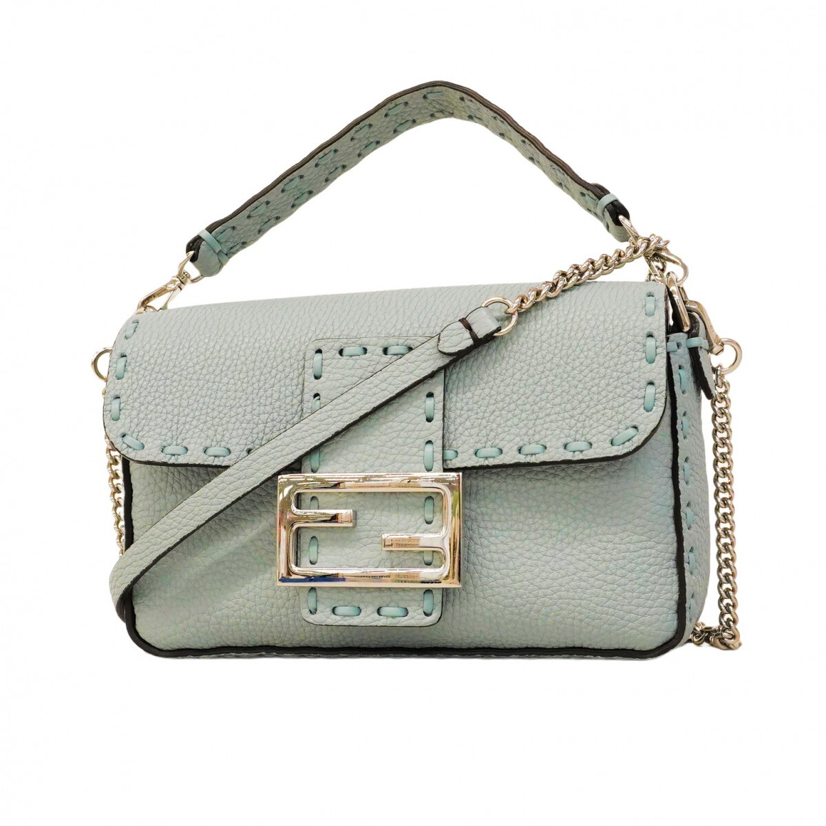 ★最終価格★SALE【5mb2337-h】フェンディ ハンドバッグ セレリア レザー ブルー シルバー金具 2wayバッグ【中古】レディース