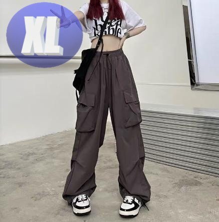 カーゴパンツ グレー レディース XL ワイド ストリート ダンス アウトドア ウエストゴム
