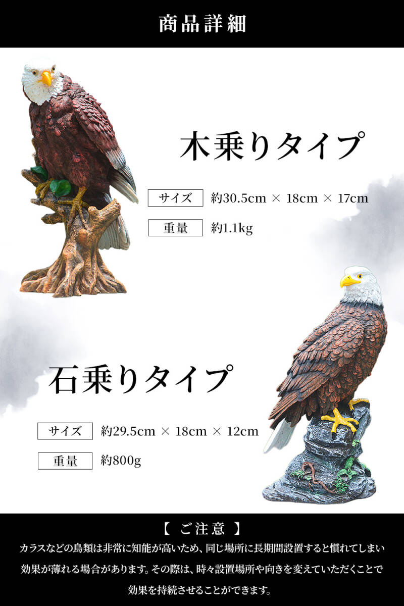 鳩よけ カラスよけ 鳥よけ 【フクロウ以上の効果&開運・魔除け】 木乗りタイプ オブジェ 置物 鷲 鷹 風水 運気UP 開運グッズ 魔除け