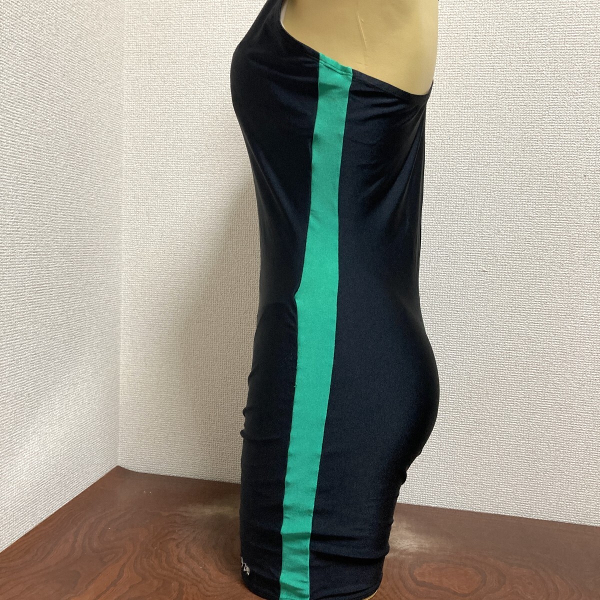H395ブラック♪1円スタート!サイド緑ライン入りハーフスパッツタイプ女子水着♪フィットネスやトレーニングや撮影用にも♪サイズ3L