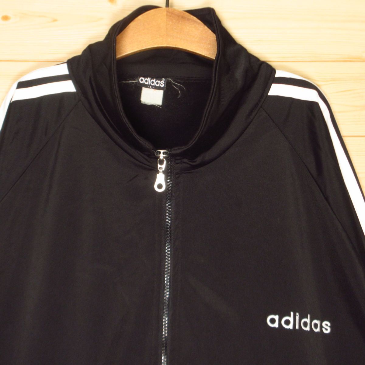 ◎希少 90s!adidas アディダス 裏起毛 トラックジャケット ジャージ 刺繍ロゴ ヴィンテージ 秋冬! 90年代 メンズ 黒 Lサイズ◆AA5016