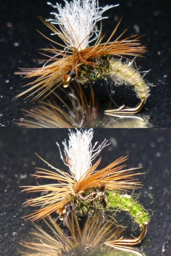 ヤマメやレインボーでも、ハッキリとしたライズが見られない、水面直下でもじっているような時には有効なフライです。