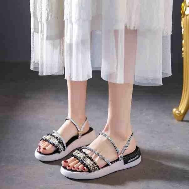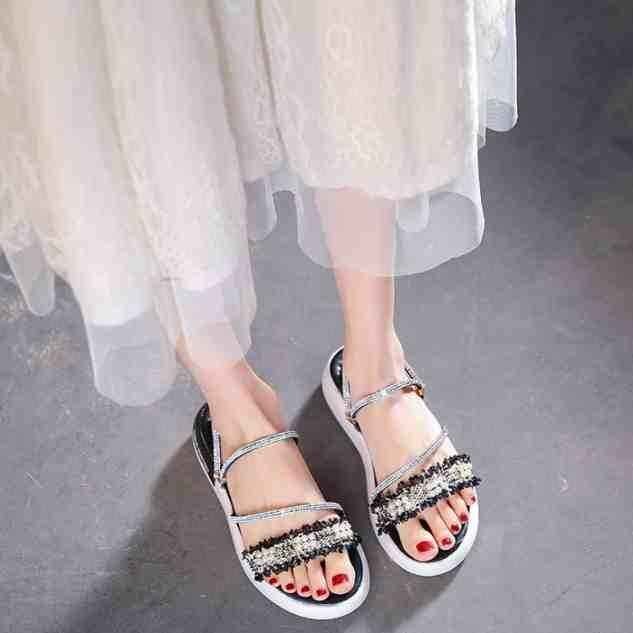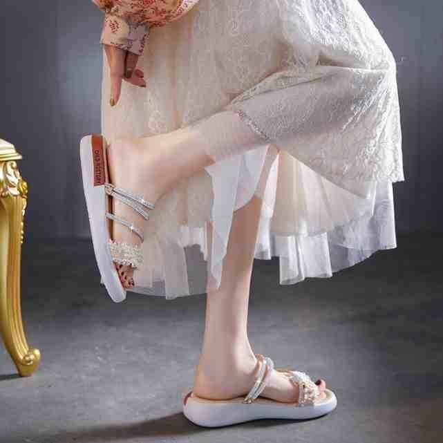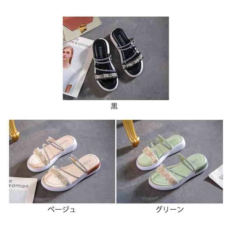 ・パールビーズが綺麗に装飾されたストラップサンダル。