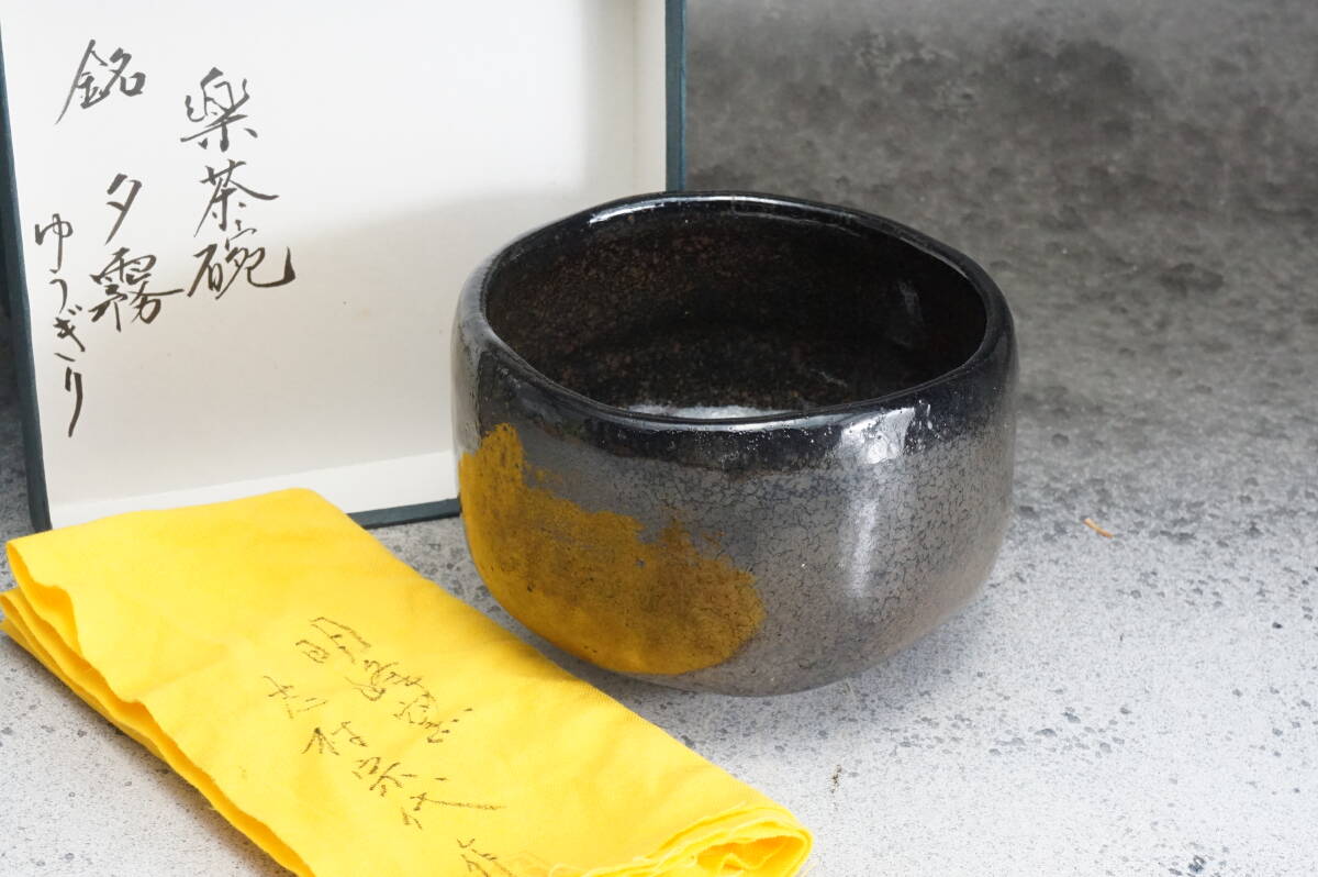 黒楽茶碗 銘 夕霧 明峰窯 志村宗代 萩殿窯 斎藤一斉 12cmx8cm / 茶道具 茶事 織部 志野 古瀬戸 表千家 裏千家
