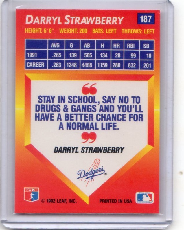 | ★☆ダリル・ストロベリー カード Vol.267 1992DONRUSS TRIPLE PLAY #187☆★ | |