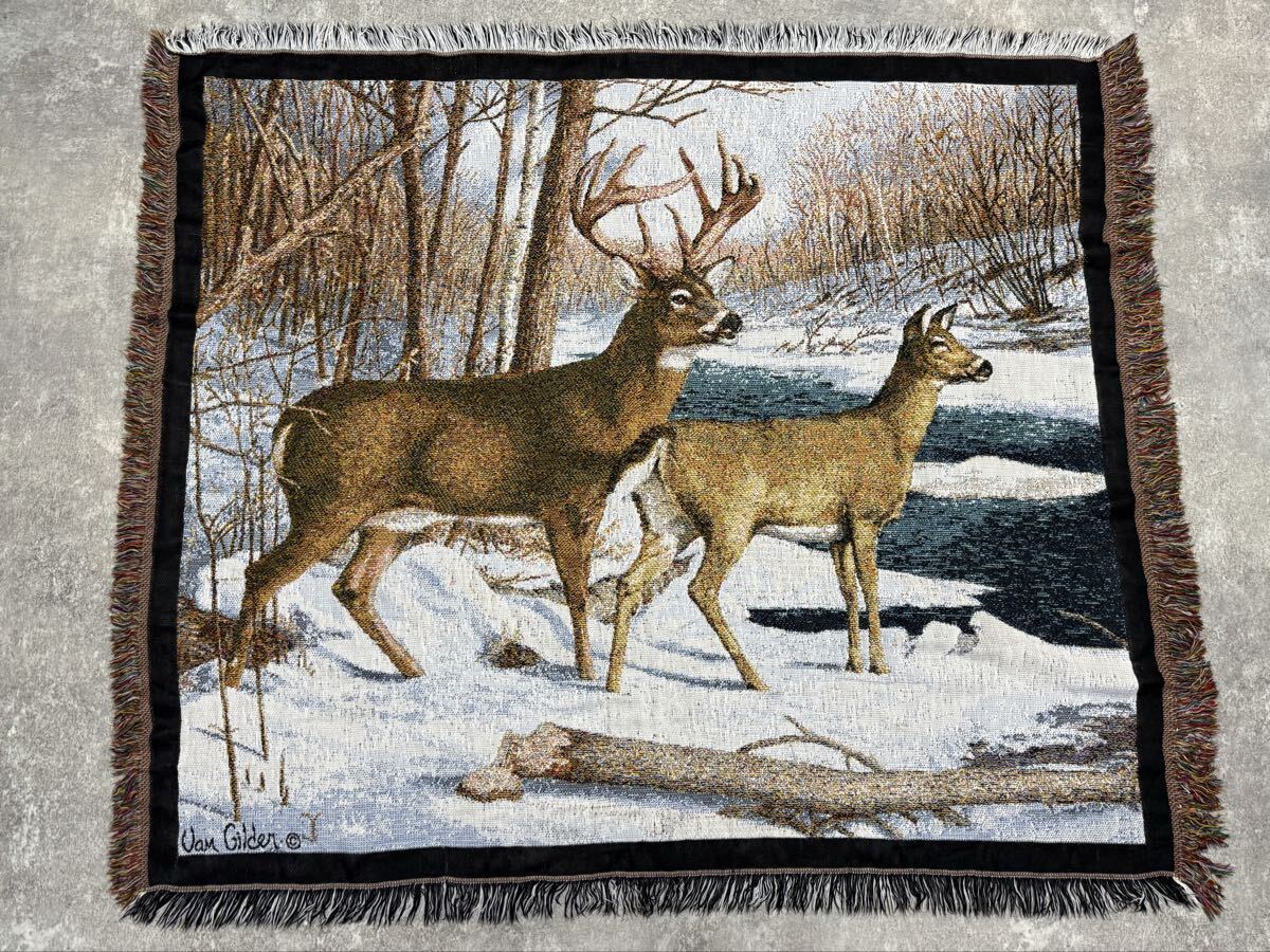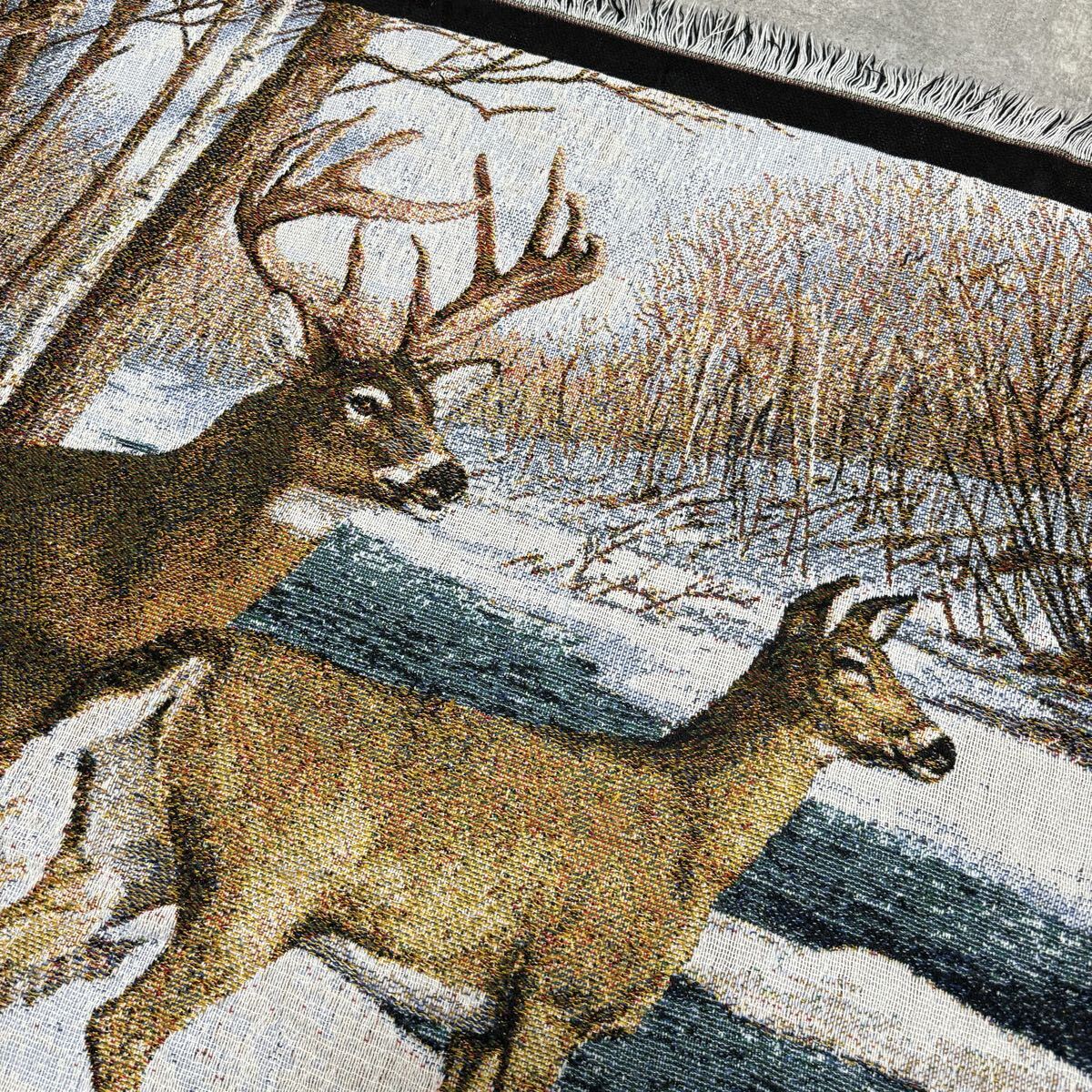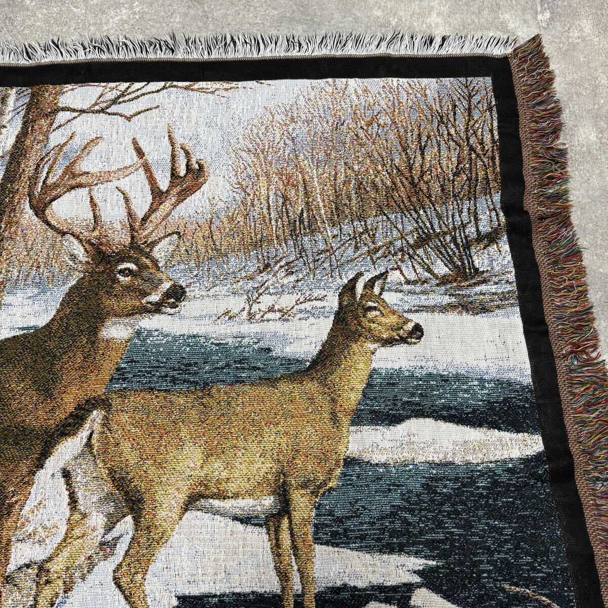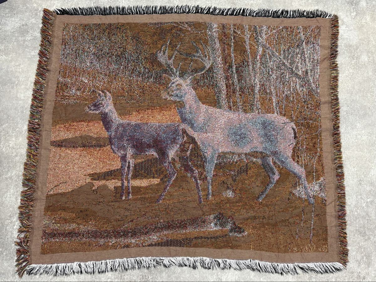 冬 雪 シカ しか 鹿 レトロ ラグ ソファーカバー 120×140