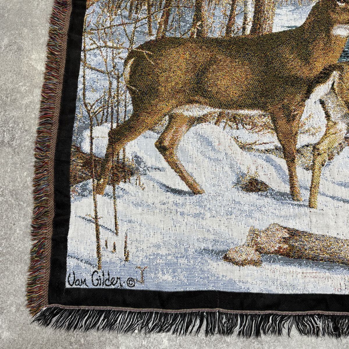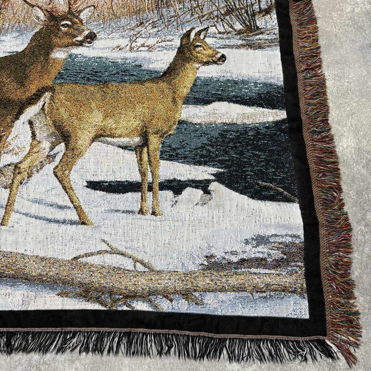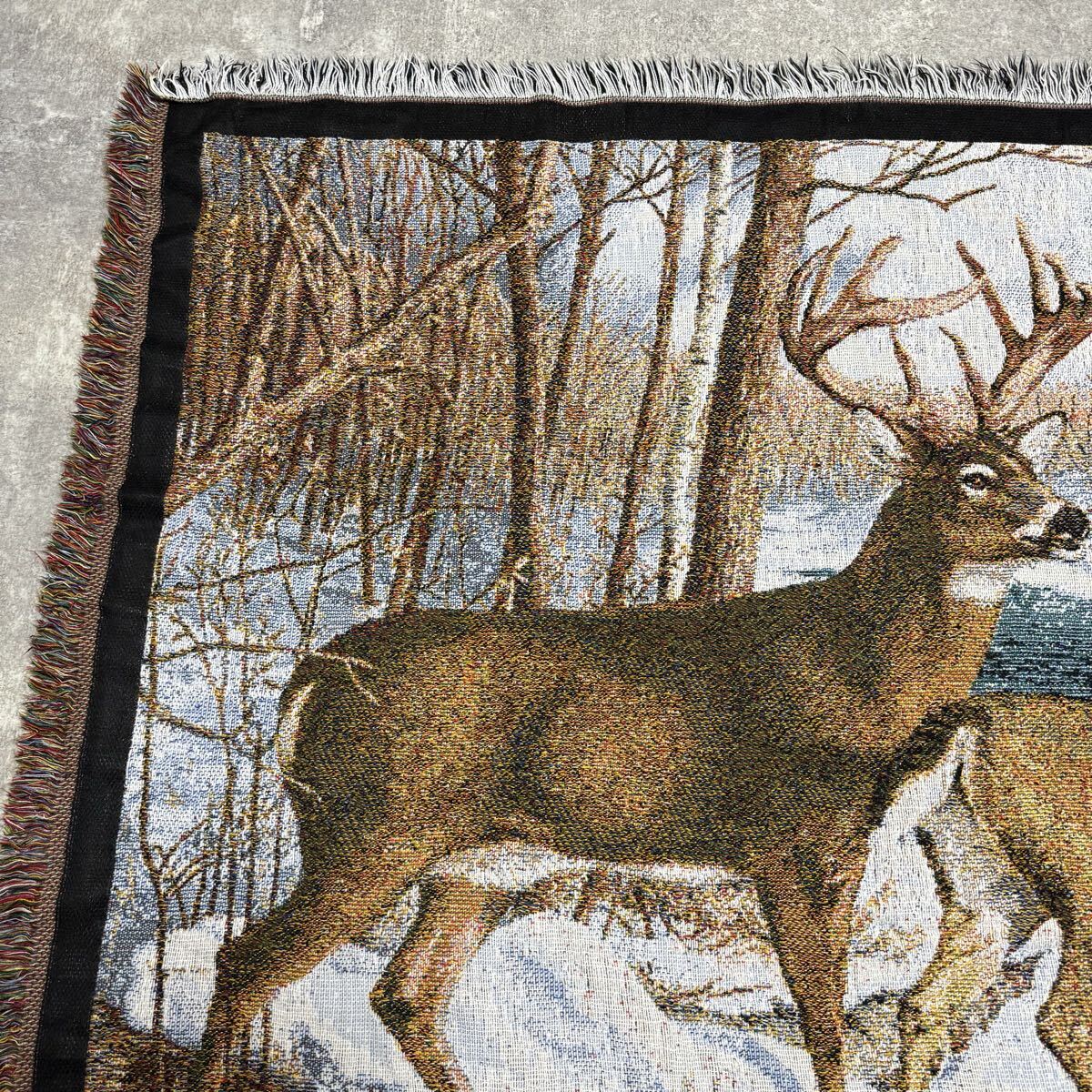 冬 雪 シカ しか 鹿 レトロ ラグ ソファーカバー 120×140