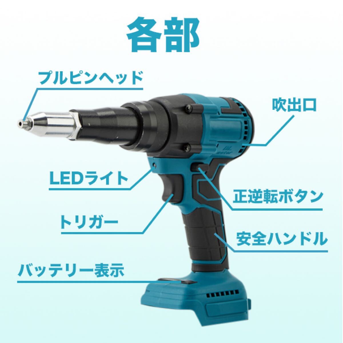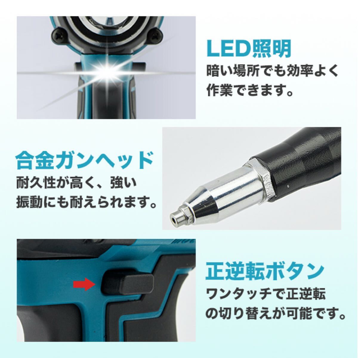 最大40Nm / 354in.lbsのトルクを提供し、ハンドリベットの4倍の速度で4.0Ahリチウムイオンバッテリーで最大800リベットを引き出すことができます。 空気圧機械よりもさらに高速