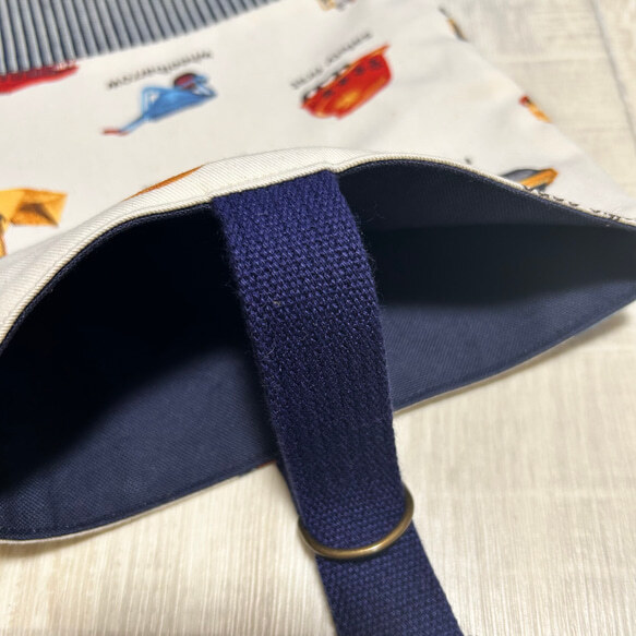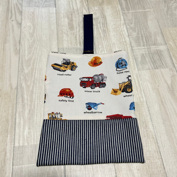 働く車 ワーキングカー ホワイト ヒッコリーデニム 上履き入れ シューズ袋