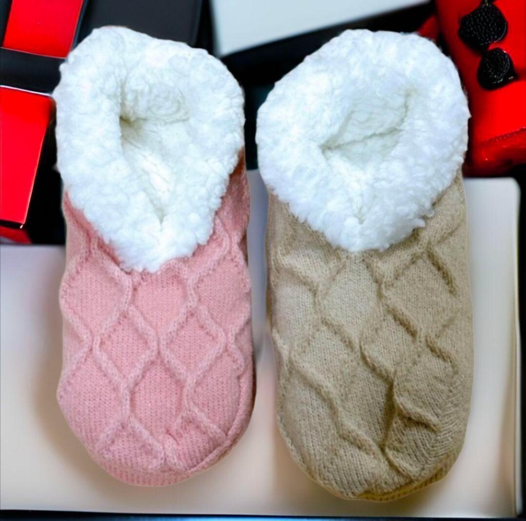 【 商品名 】ルームソックス1 2足Aセット ピンク+ベージュ アラン模様