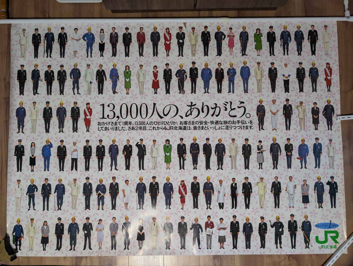 | 激レア JR北海道 創立記念ポスター 13,000人のありがとう 制服コレクション 超特大 B0サイズ 職員総出演 鉄道制服 マニア必見 | |