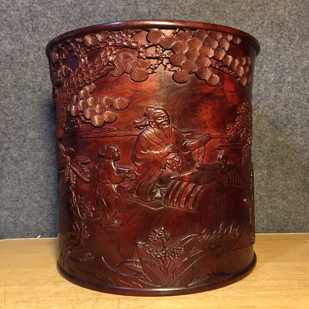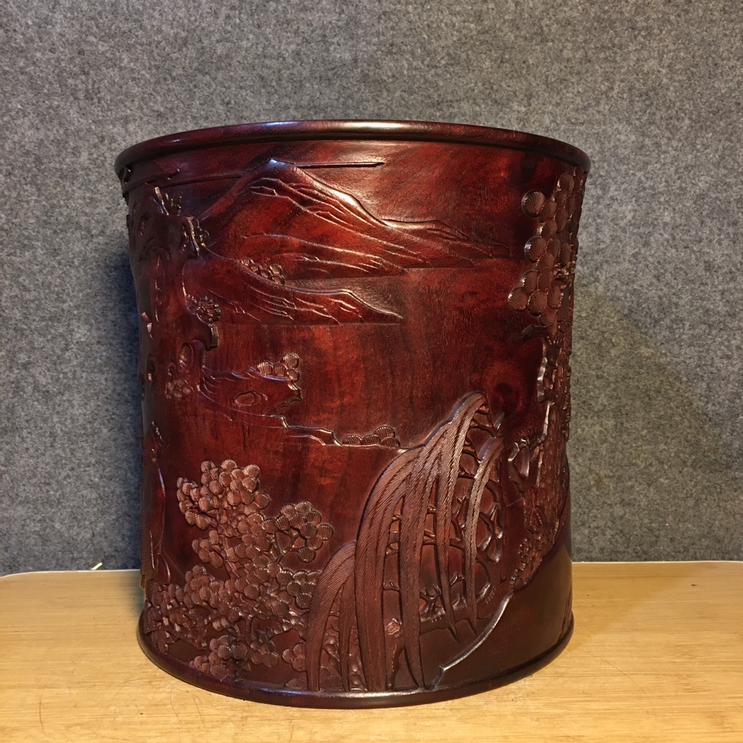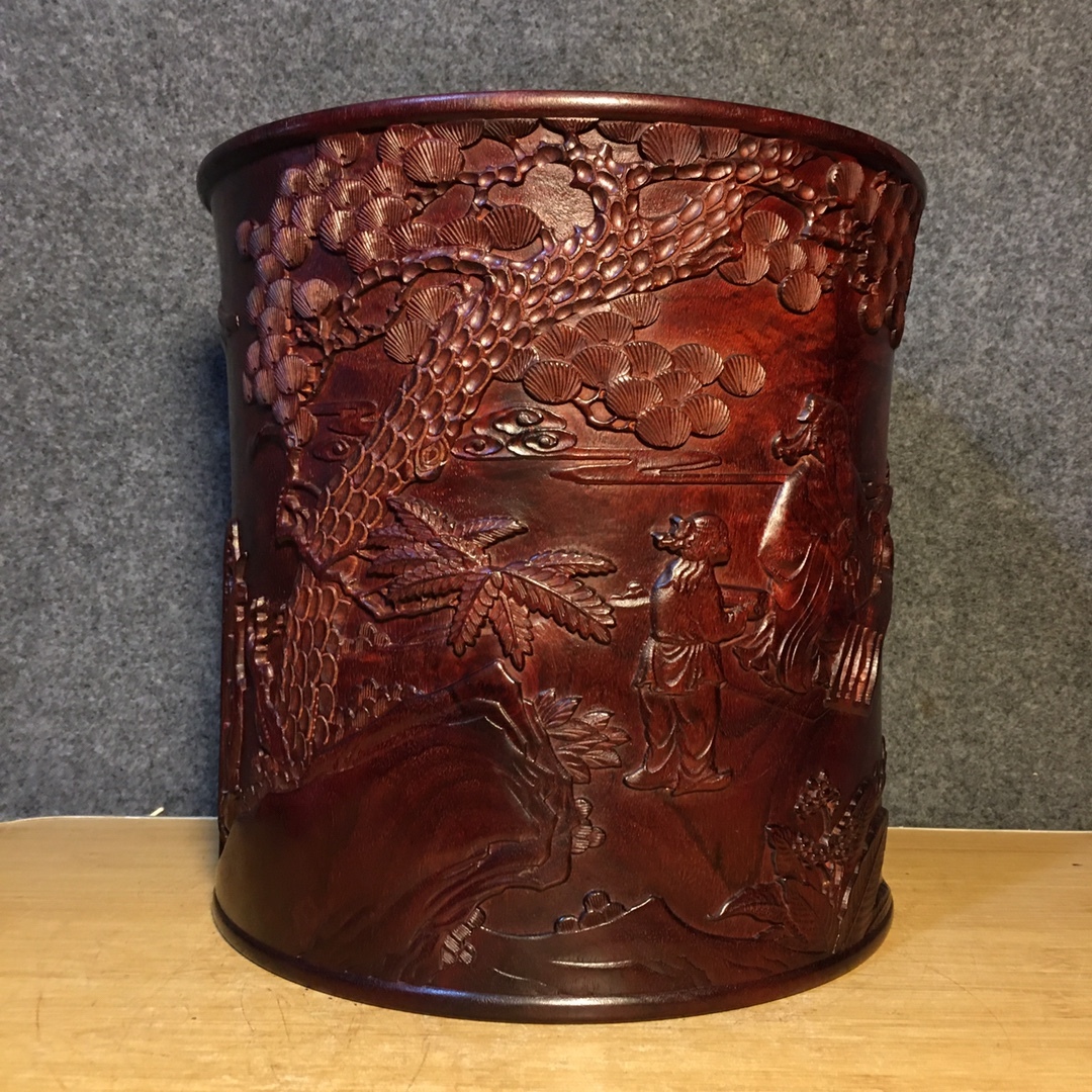 唐物 清 大葉黄花梨 彫刻 筆立て 筆道具 文房具 木製 極細工 中国古玩 骨董品 古美味 D611